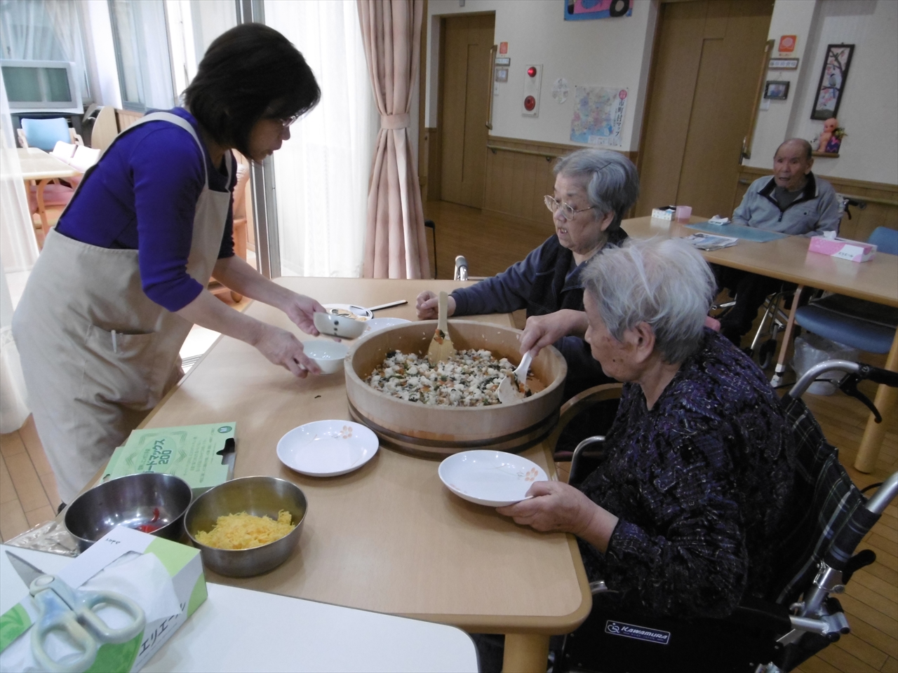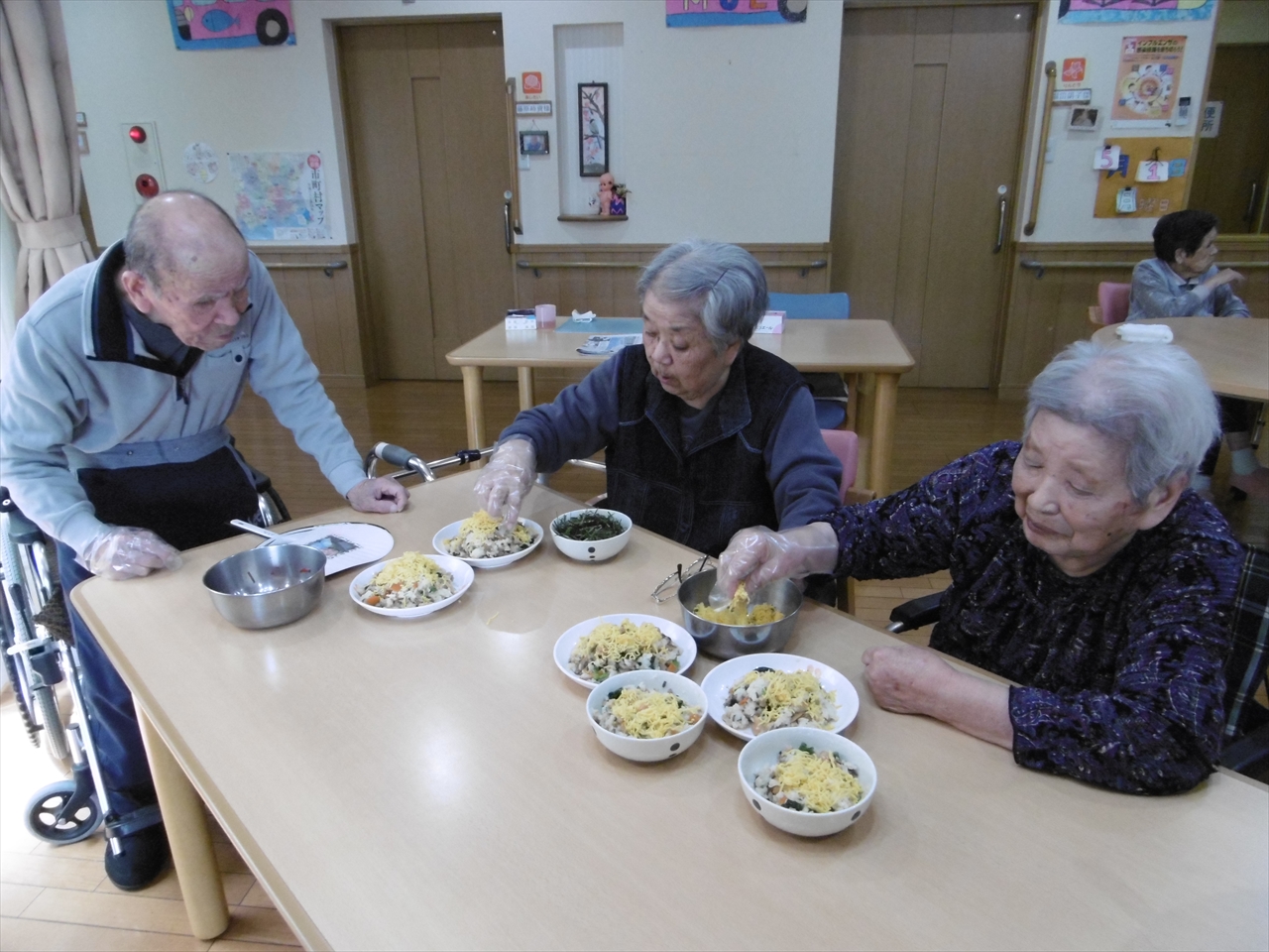 昼食にちらし寿司を作りました。盛り付けを手伝って下さり「美味しそう」と言われていました。
