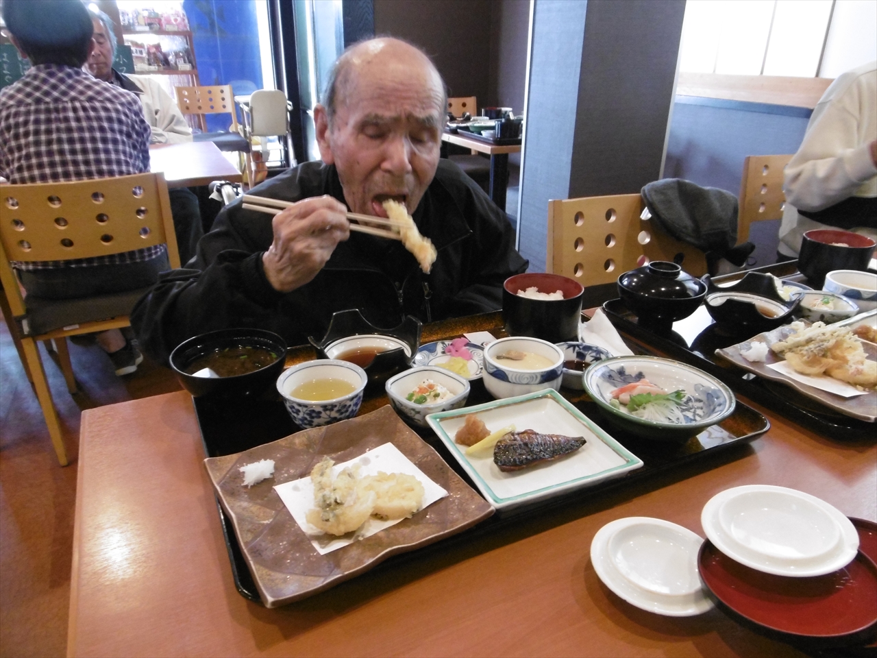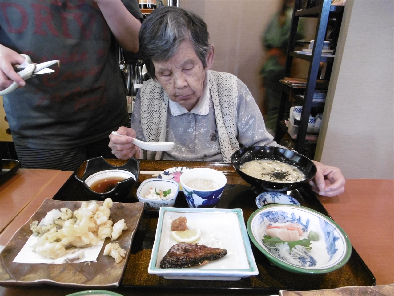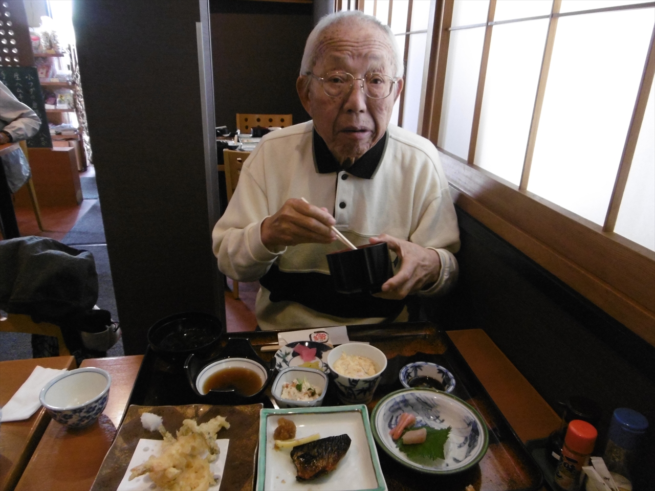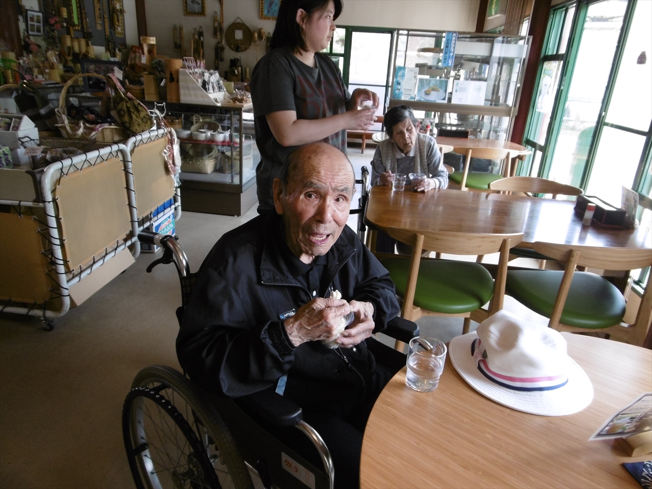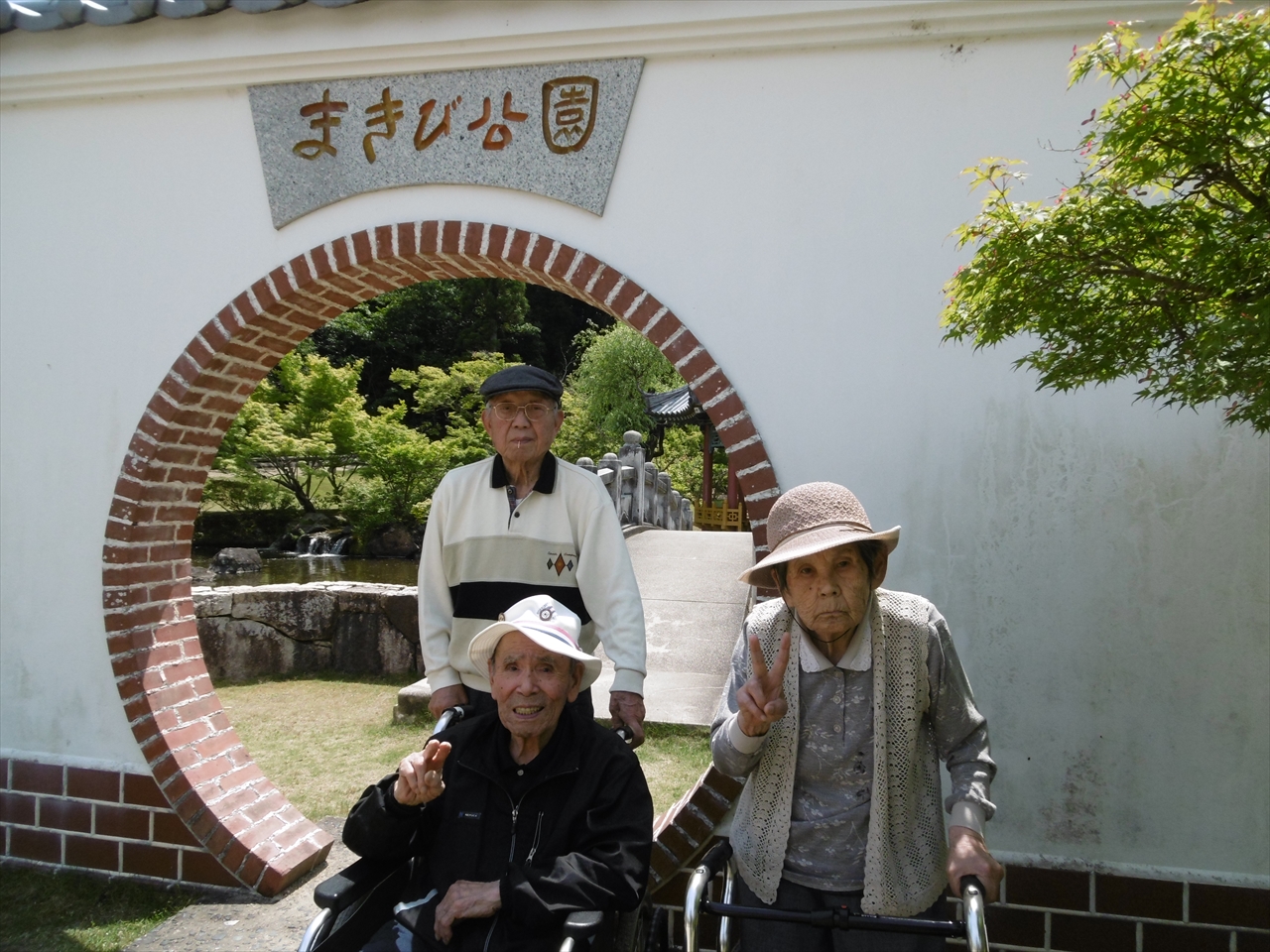 水島で昼食を食べ、その後、真備にある、まきび公園へ行きました。暑かったのでソフトクリームを食べました。「冷たいから美味しいと」大満足されていました。