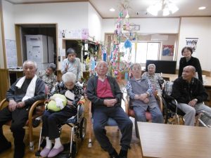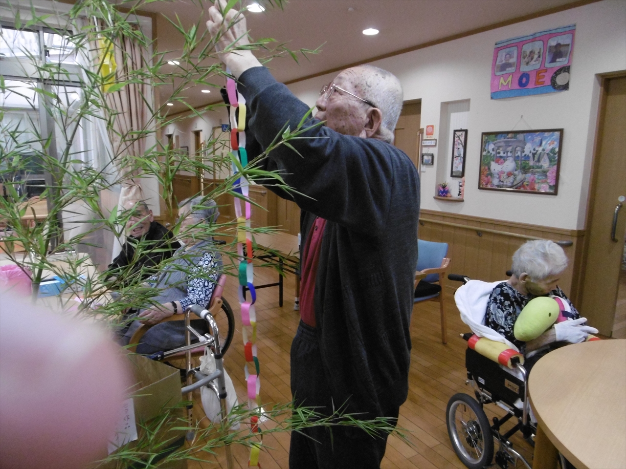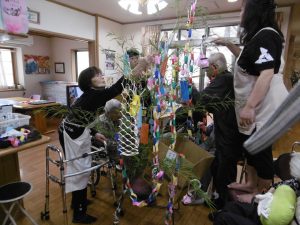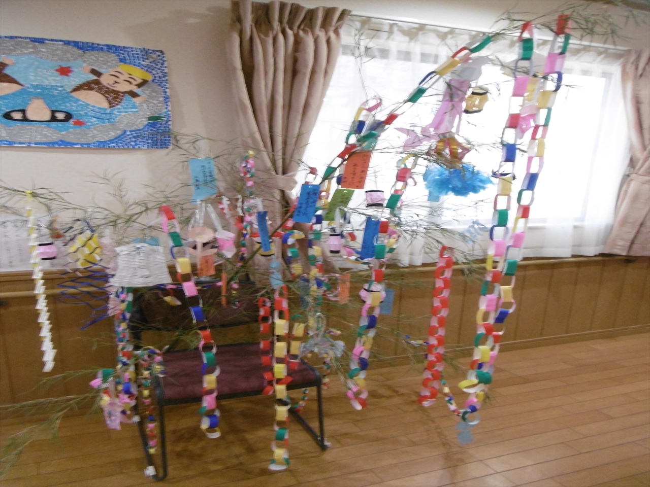皆様で書いたり、作った七夕飾りを笹に飾り付けました。