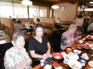 女性3名の利用者様と漁火大名へ昼外食へ行きました。天ぷら、お刺身と大変喜ばれていました。