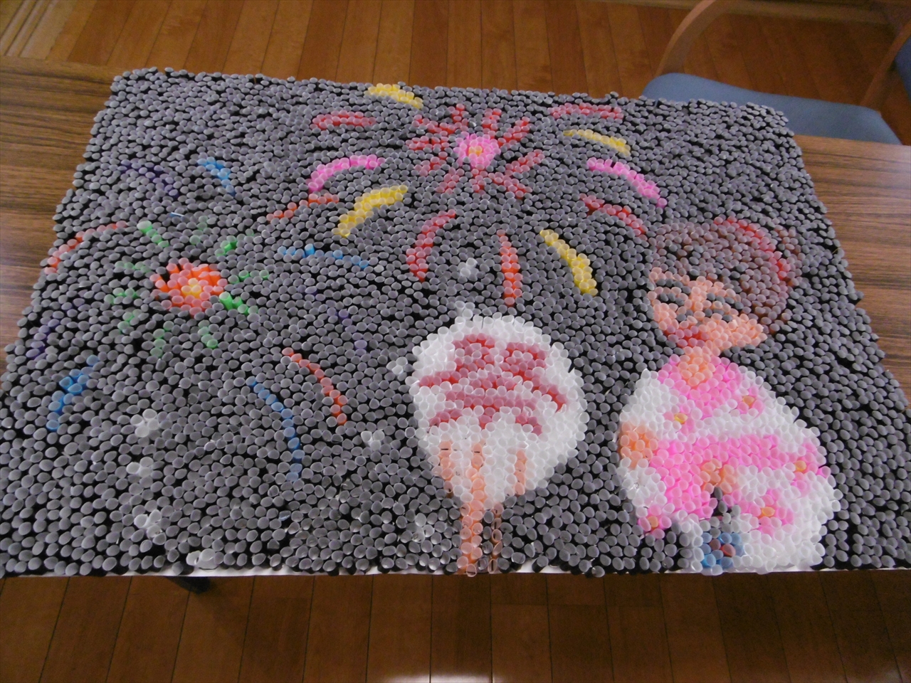 きれいな花火も上がっています。後半にできる作品もお楽しみに!
