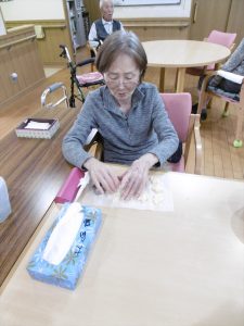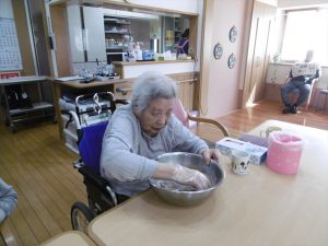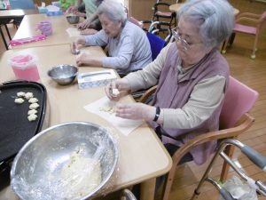 クッキー作り 花の里(1階) 2017.09.25 ホットケーキミックスででクッキーを作りました。 ココアを入れて白と茶の2色のクッキーになりました。 ホットプレートで焼きおやつの時間にみんなで食べました。 手作りおやつ(どら焼き) ふるさと(2階) 前の記事 野菜の収穫 ふるさと(1階) 次の記事
