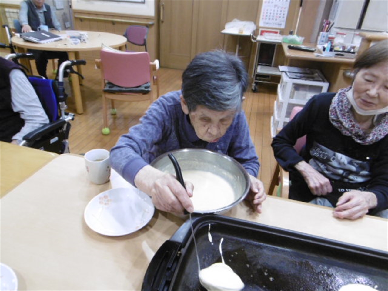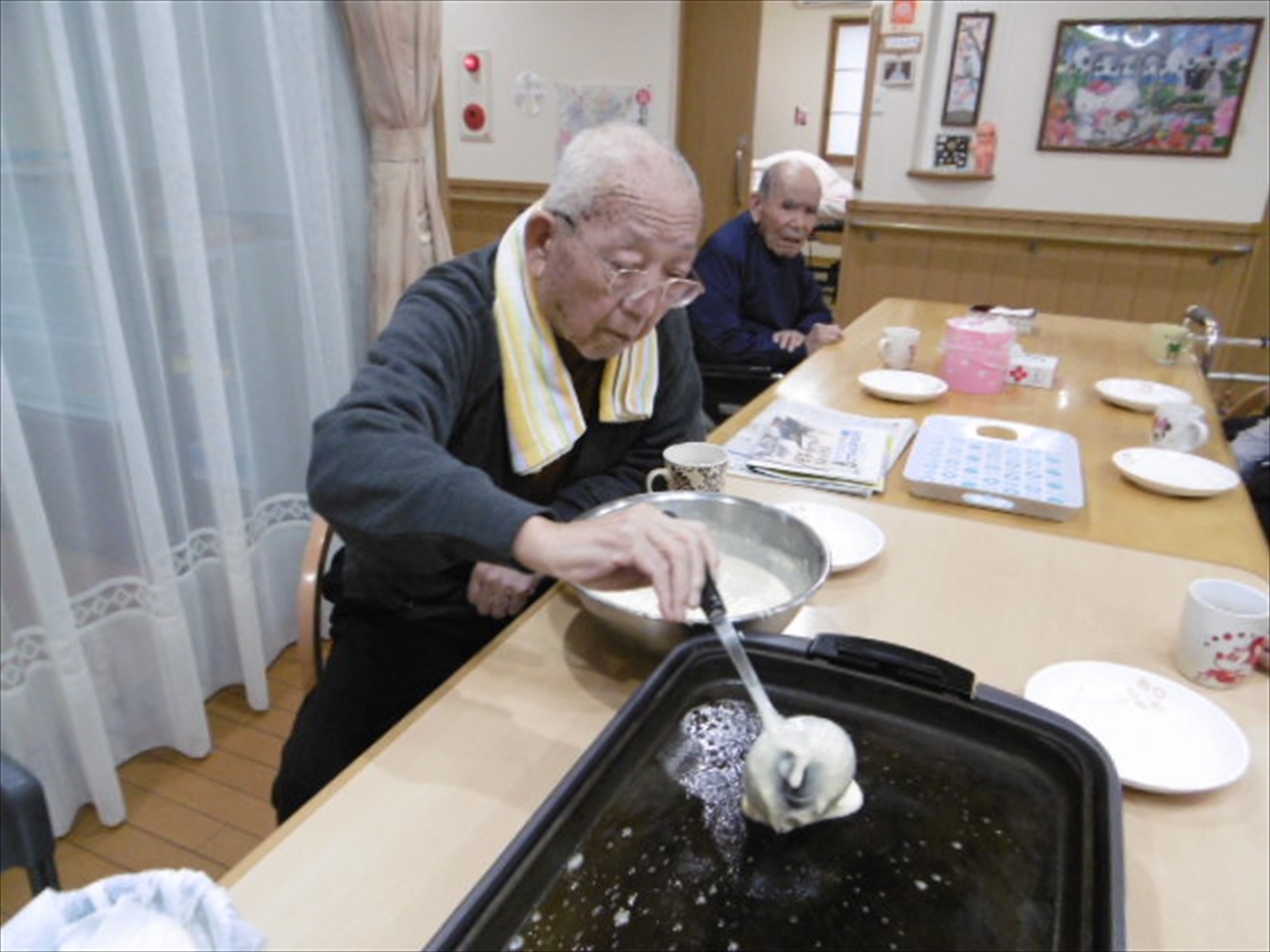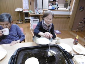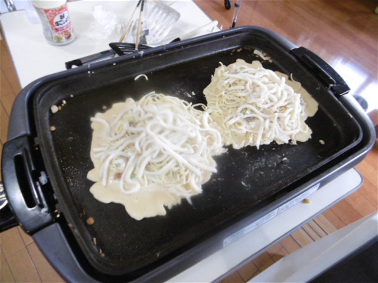 皆さんでお好み焼きを焼いてお昼に食べました。