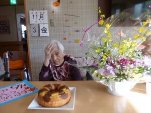 入居者様の91歳の誕生日を皆さんでお祝いしました。
