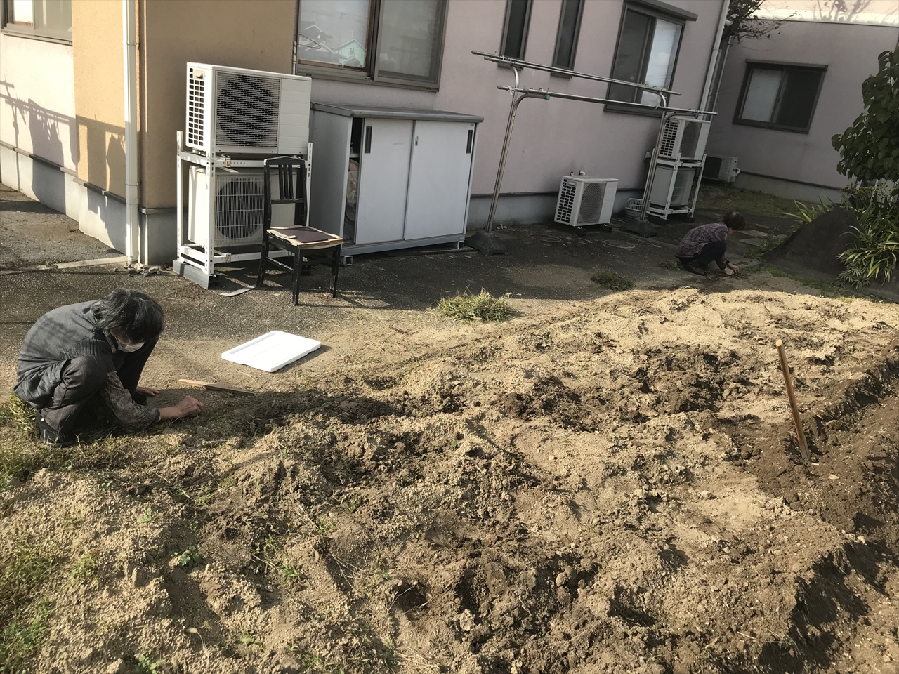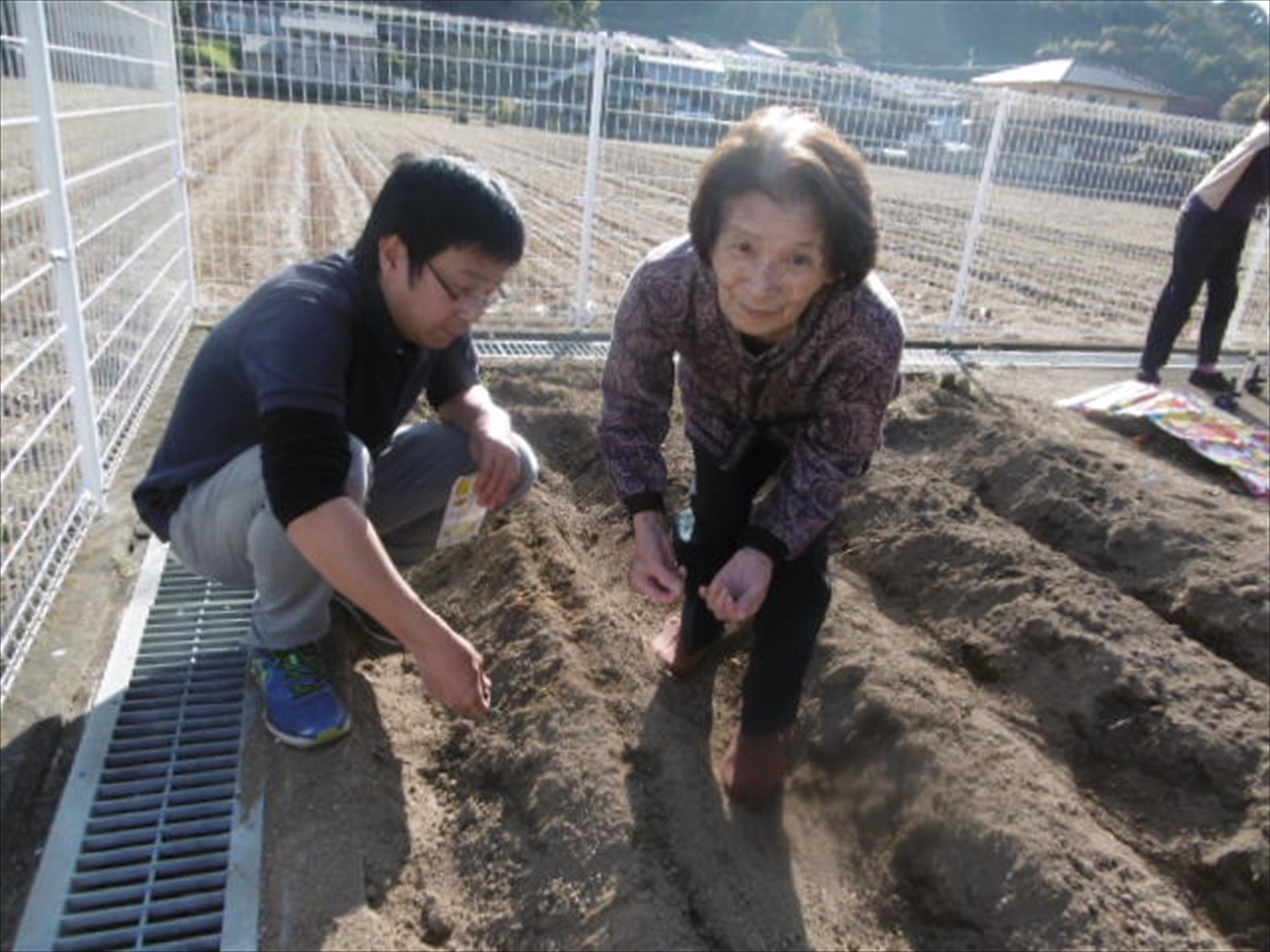 それを入居者様と一緒に草抜きをして、耕し、畝を作り、種まきをしました。
