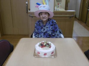 入居者様 誕生日 花の里(1階) 2017.11.17 入居者様の誕生日をみんなで祝いました。 ご家族の方がケーキを持って来て下さり、みんなで食べました。 ケーキの帽子がお気に入りで、「まだかぶります」としばらくかぶっておられました。 紅葉ドライブ 花の里(2階) 前の記事 外食 紅葉ドライブ ふるさと(1階) 次の記事