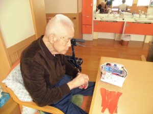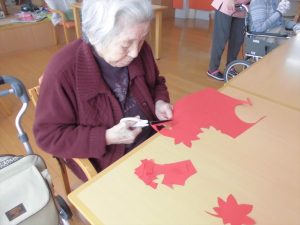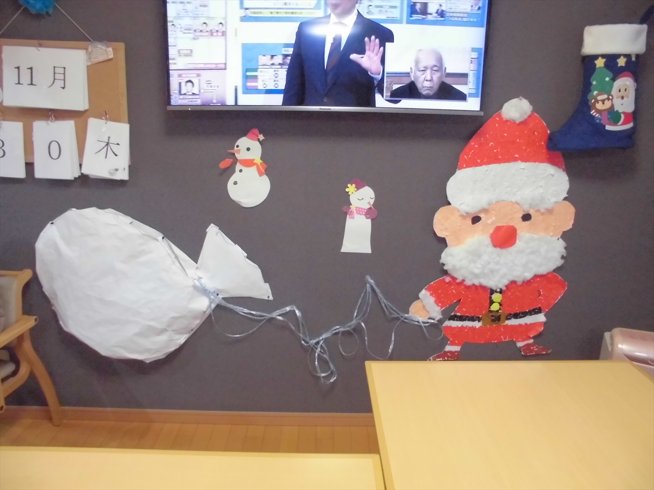 ちぎり絵でサンタクロースとプレゼント袋を作りました。