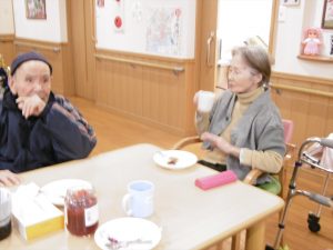 好きなジャムを付けて頂きました。たっぷりとつけられ、美味しい!と喜んでおられました。