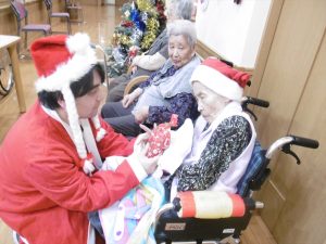 クリスマス会 花の里(1階) 2017.12.24 クリスマス会ということでお昼はちらし寿司、おやつには手作りでケーキを作りました。 ご自分で生クリームかチョコか選んで頂き、飾りつけをして食べました。 プレゼントは靴下と手袋でした。 餅つき 花の里(1・2階合同) 前の記事 ご家族からの差し入れ 花の里(1階) 次の記事