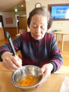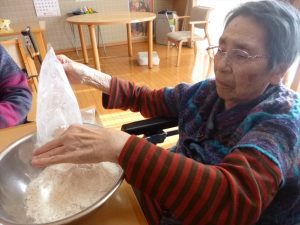 ドーナツ作り ふるさと(1階) 2018.01.16 今日はみなさんとドーナツ作りをしました。 粉と卵を混ぜてもらい、油で揚げるのは職員が行いました。 たくさんできたのでいつもより多いおやつでしたが、みなさんあっという間に食べられました。 初詣 ふるさと(1階) 前の記事 初詣 花の里(2階) 次の記事