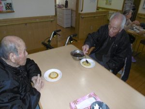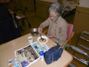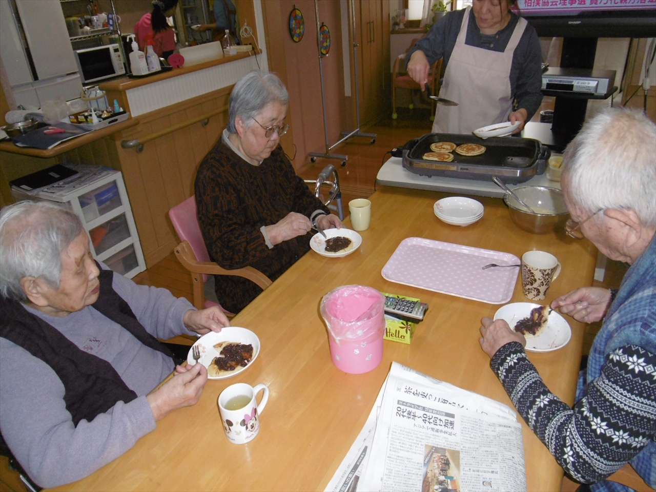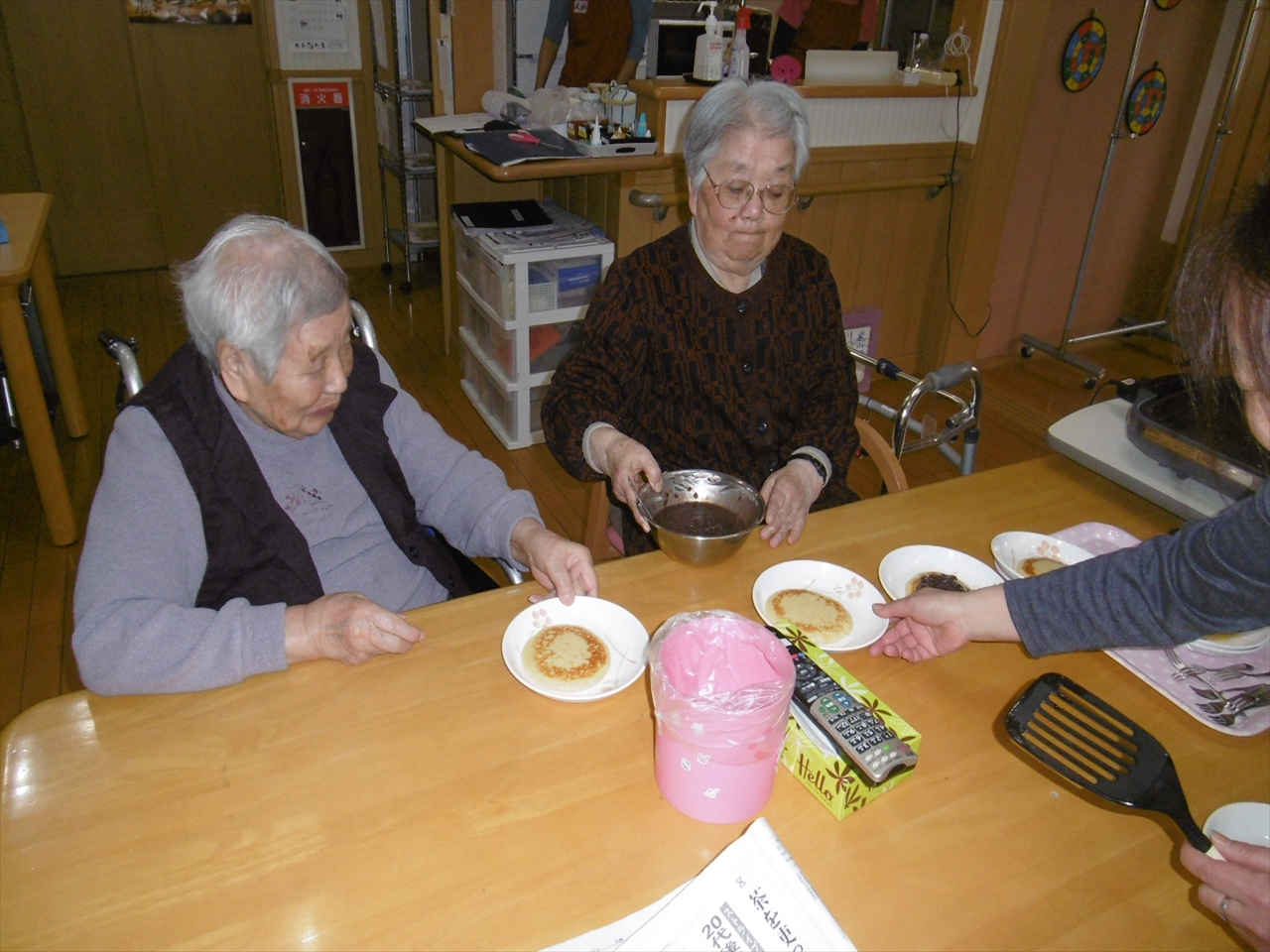 ホットケーキ作り 花の里(1階) 2018.02.2 おやつにホットケーキを焼きました。 ご自分で大好きなあんこを乗せて食べました。 「ちょっと取りすぎたみたい」と笑いもありました。 節分タイトル作り 花の里(1階) 前の記事 節分会 花の里(1階) 次の記事