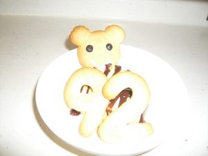 手作りのクッキーとホットケーキの中にチョコを入れて焼いた物を食べながら皆さんでお祝いしました。