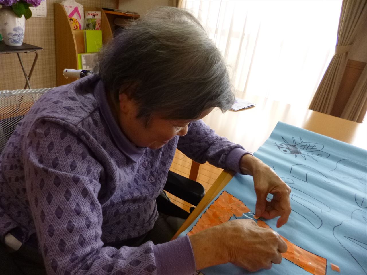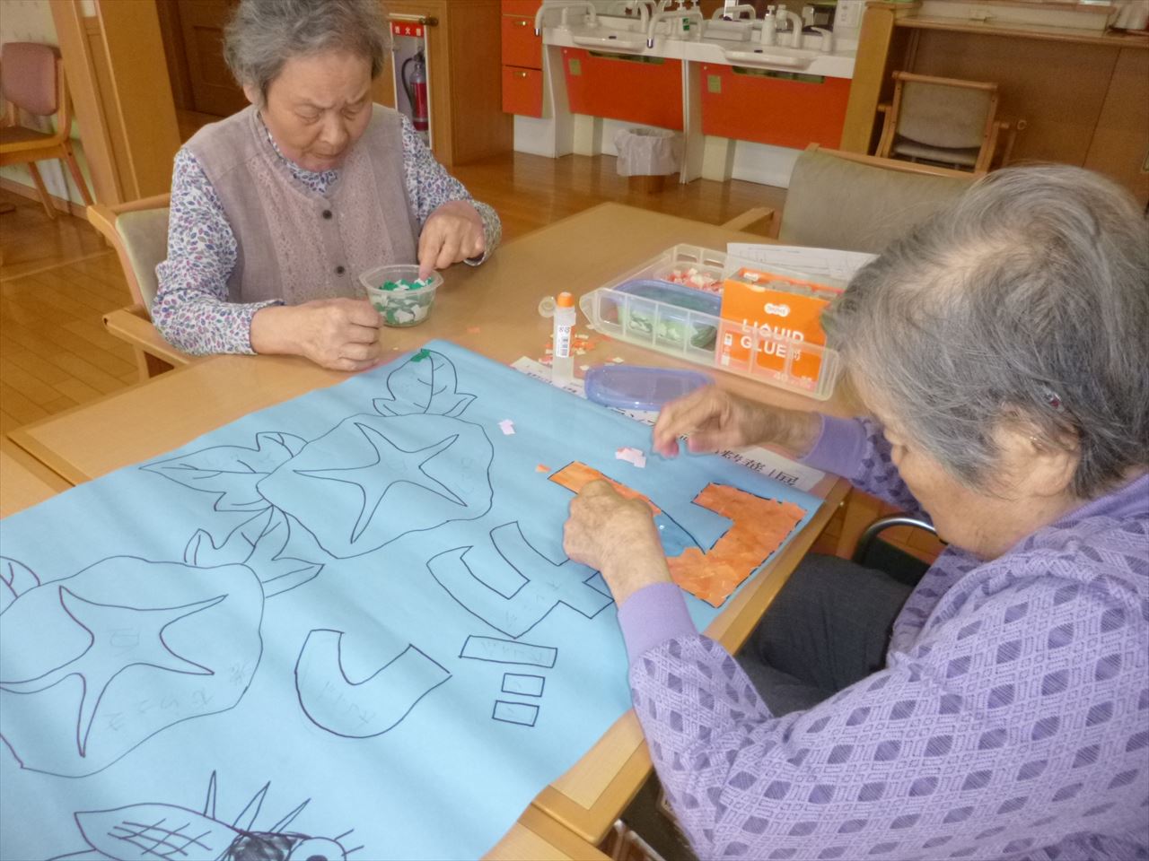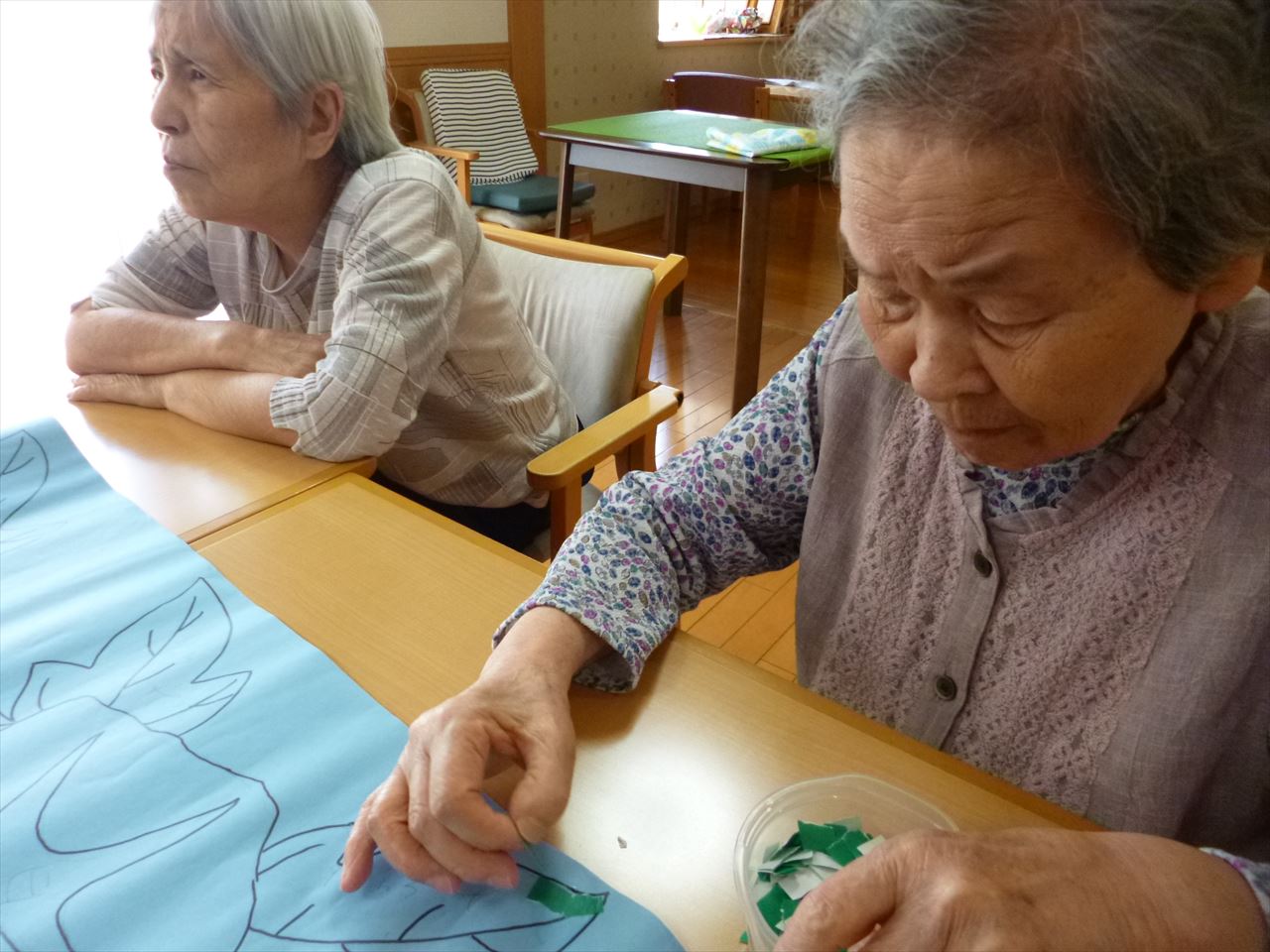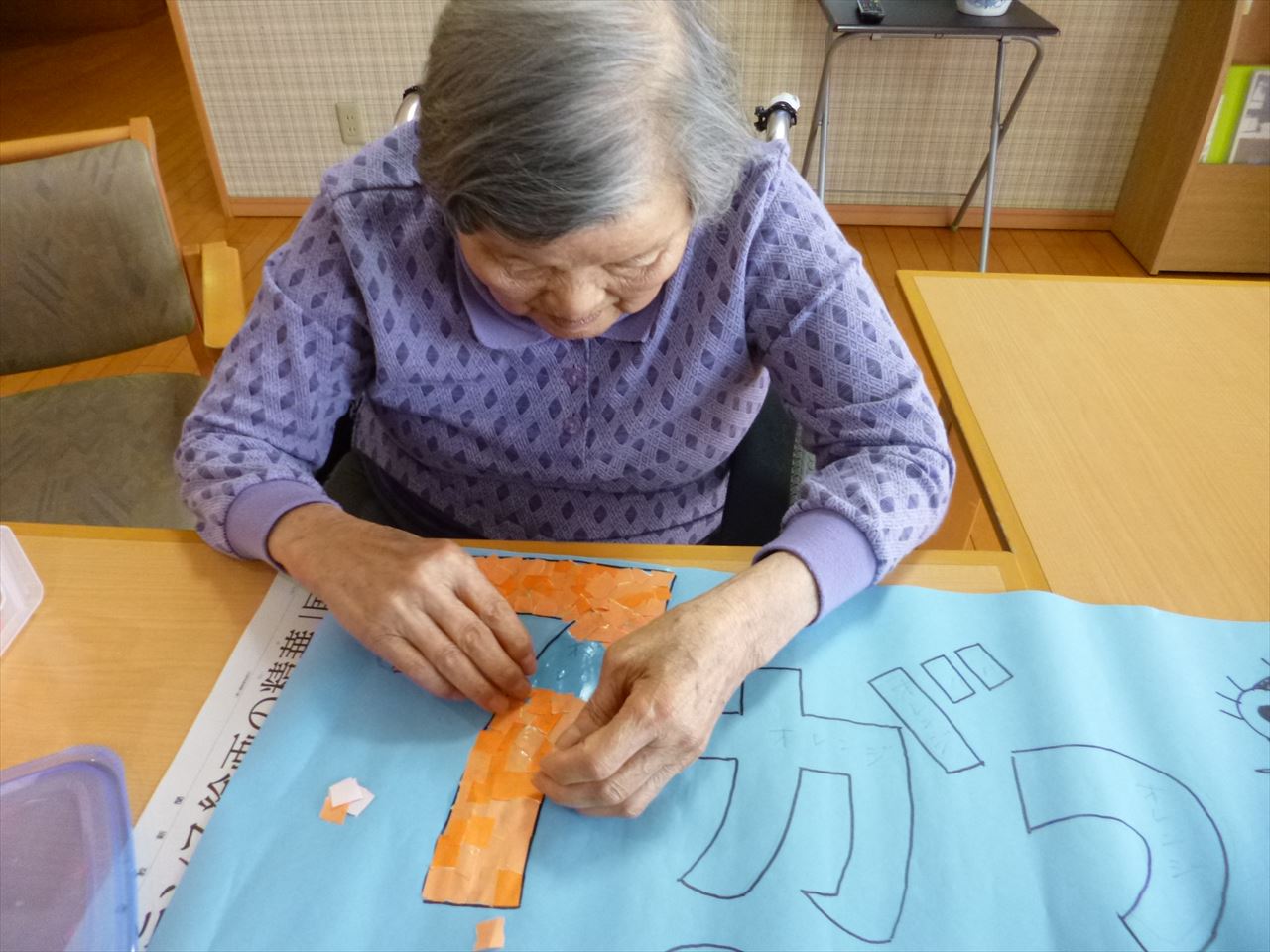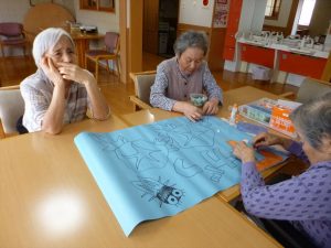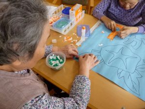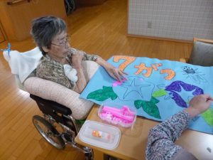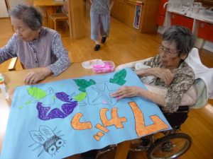 壁面作成(ふるさと1階) 2020.06.22 季節に合わせてちぎり絵で7月の壁面を作成しました。みんなでボチボチ作ろうと思います。 焼きそば作り(ふるさと1階) 前の記事 父の日(花の里2階) 次の記事