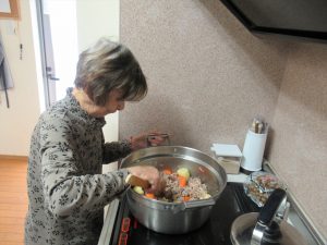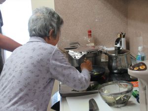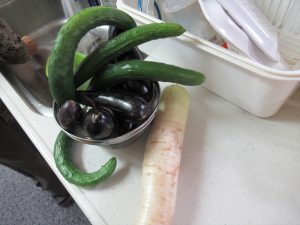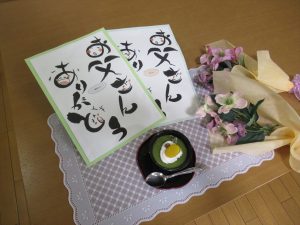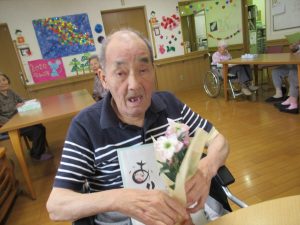 今日は一日遅いですが、父の日のお祝いを行いました。 手作りカレーとおやつの時間には抹茶プリンを作りお祝いをしました。 いつものようにできることを手伝ってもらいましたが、たくさんの具材が入った鍋を混ぜるのはさすがに疲れたと言われていました。 少し辛めのカレーになりましたが、「このくらいがちょうど良い!」と喜んで食べてもらえました。おやつの時間のお祝いも喜んで下さり、素敵な笑顔を撮ることができました! 今日のカレーには花の里の畑で収穫したナス、ピーマン、キュウリを使用してみました。大きく育ってくれ美味しかったです。