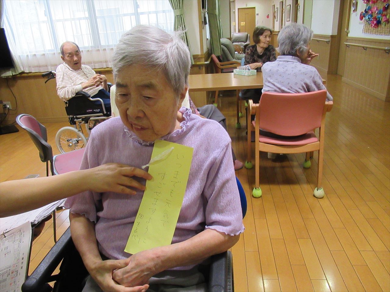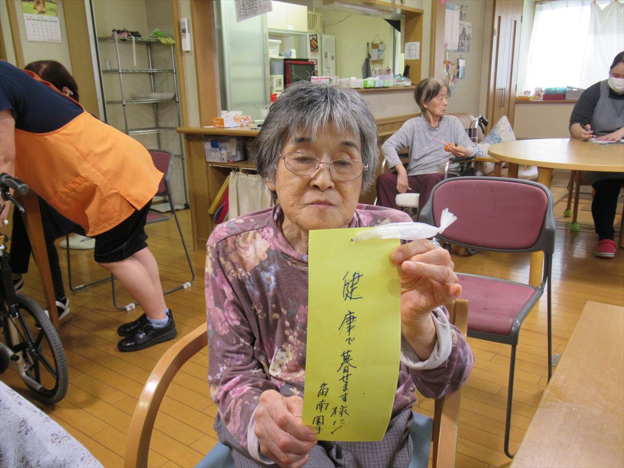 おやつの後に短冊にお願い事を書いて、笹に飾りました。