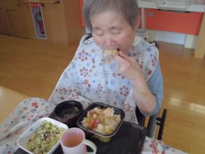 みんなで調理して海鮮丼に添えていただきました。
