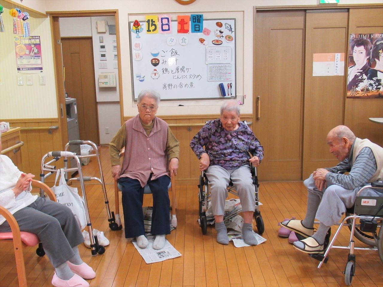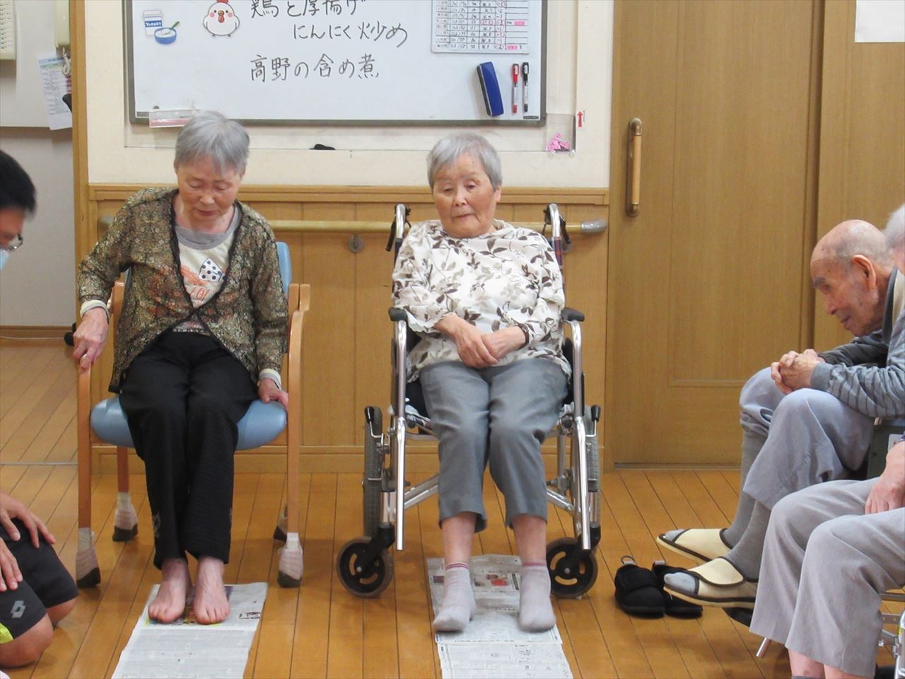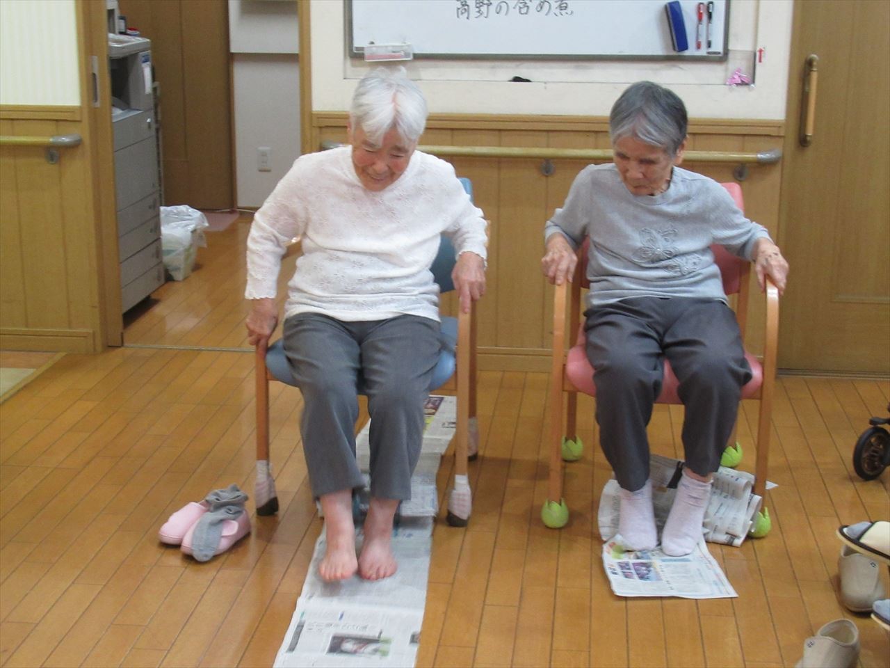 今日は足を使って新聞紙を自分の所へ巻き取るレクをしてみました!