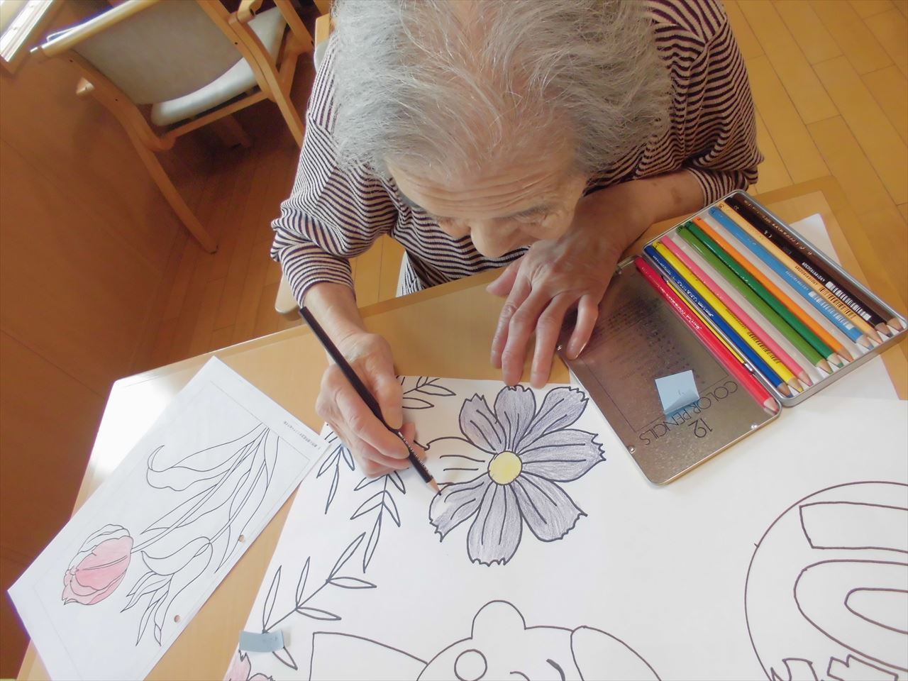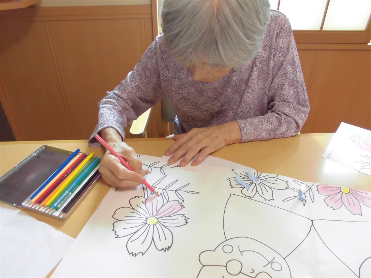 色えんぴつで丁寧に10月の壁面作りをされています。