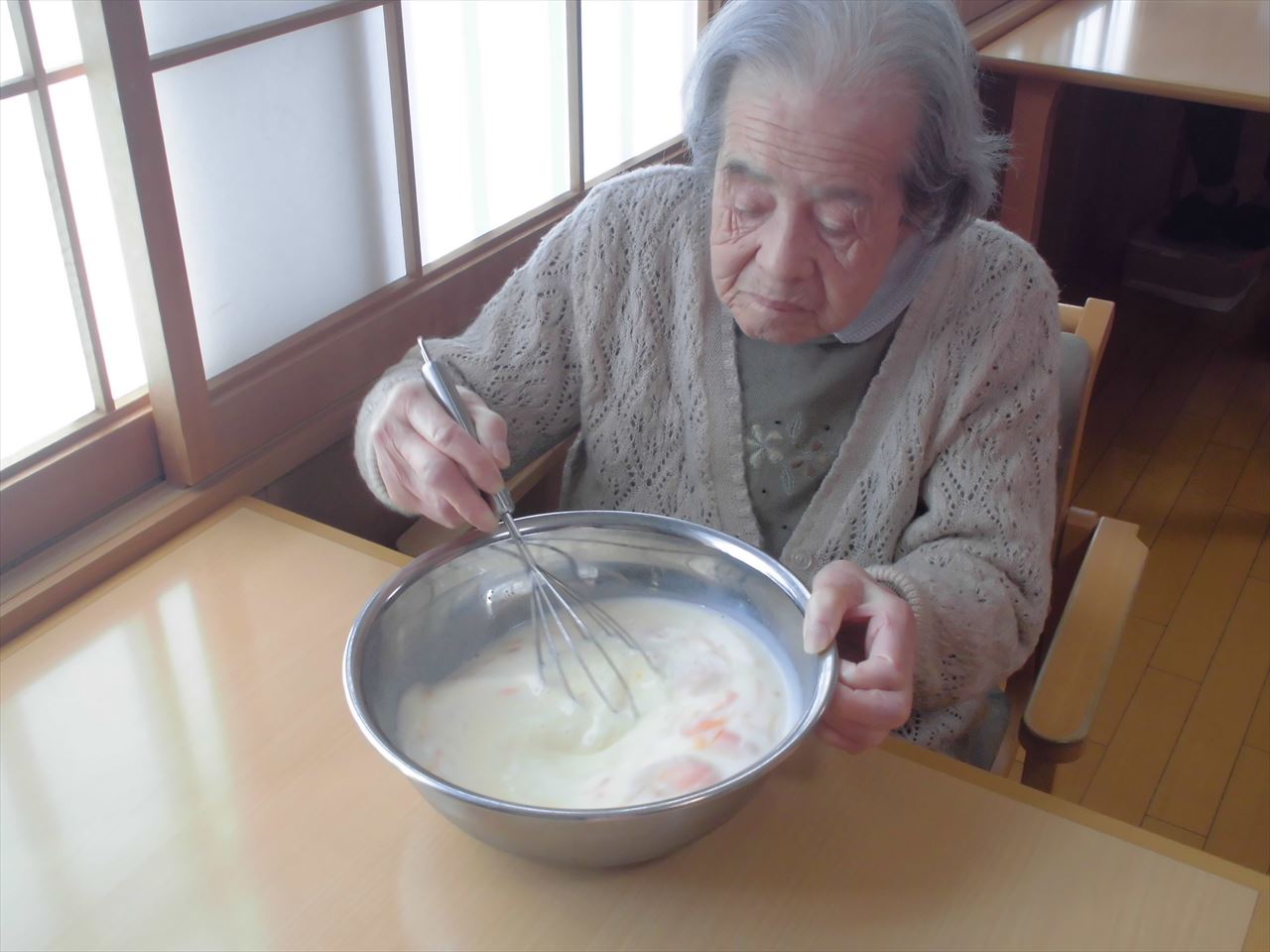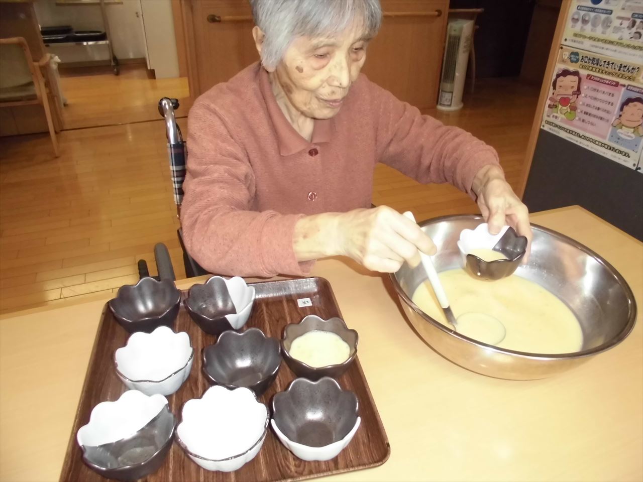 89歳を迎えられた入居者様の誕生日会にみんなでプリンをつくってお祝いしました。これからもお元気でお過ごしくださいね!