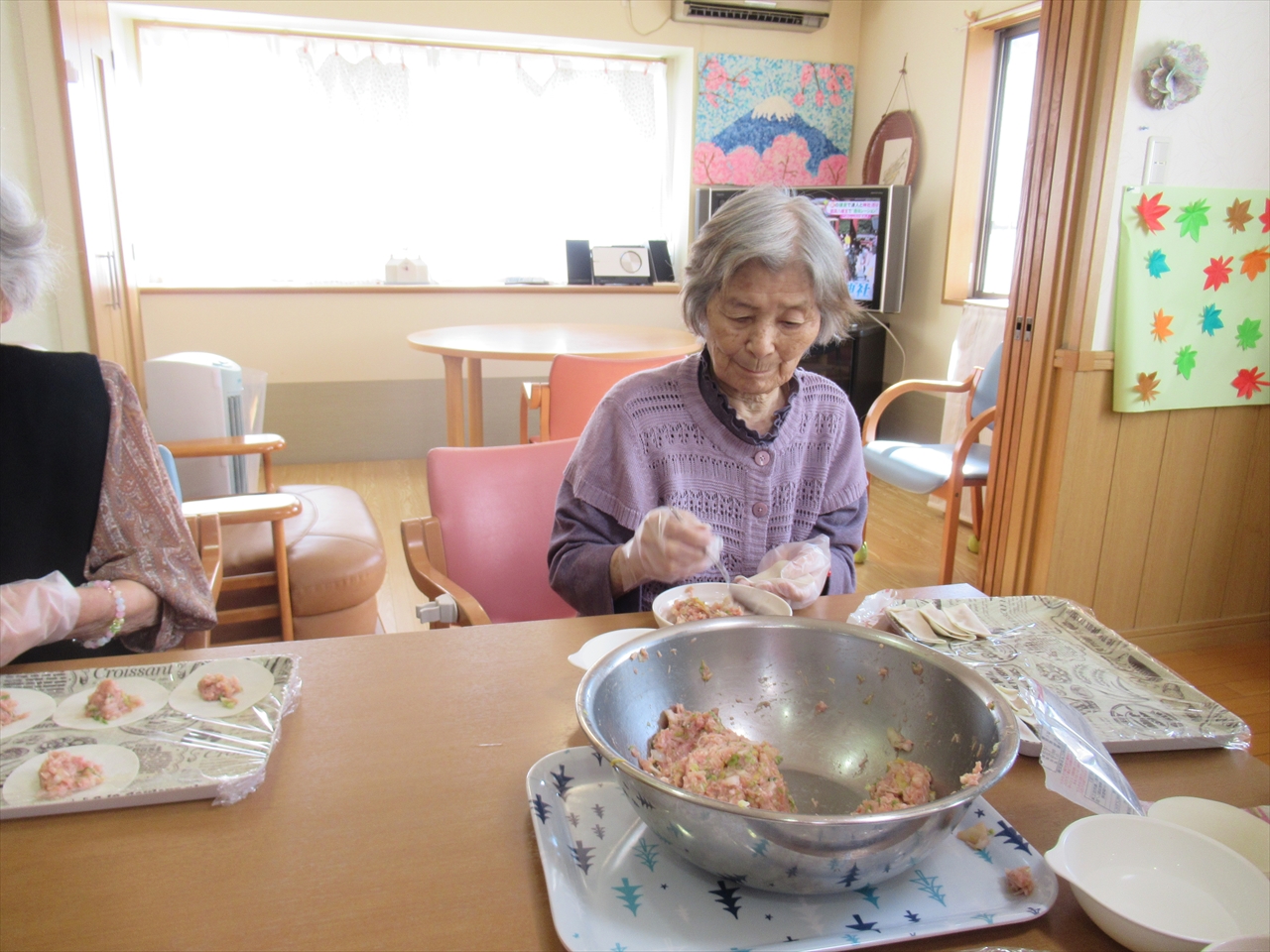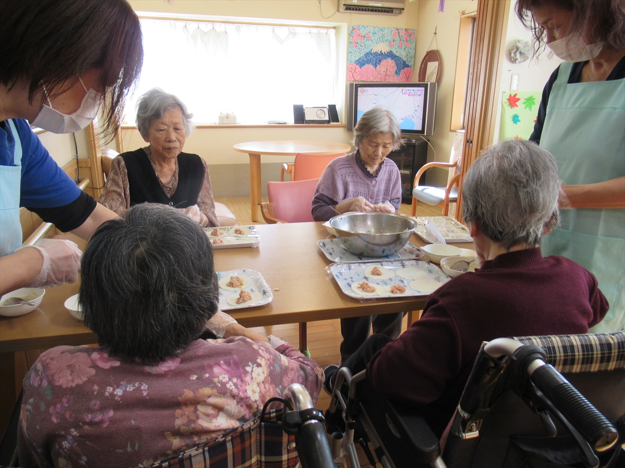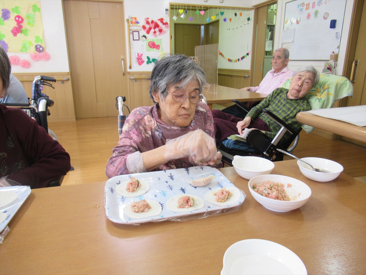こねる、詰める、閉じるを皆さんにしてもらい、たくさんの餃子もあっという間に終わりました!野菜たっぷりの餃子だったので、あっさりととても美味しかったです!