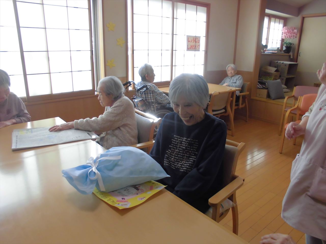 職員が用意したバースデーカードに感激され、何度も何度も喜んでくださいました!