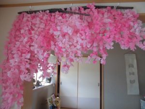 みんなでコツコツと丁寧に作ったので、とても綺麗なしだれ桜ができました!