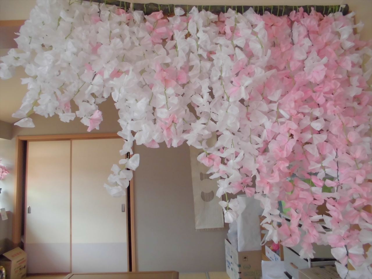 みんなでコツコツと丁寧に作ったので、とても綺麗なしだれ桜ができました!