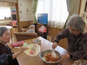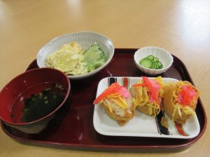 今日の手作り昼食は稲荷寿司とてんぷらを手作りしました。皆さんにできることをしっかりと手伝って頂き、たくさんの量を作りました!作り立てはとても美味しく皆さんあっという間に食べておられました!