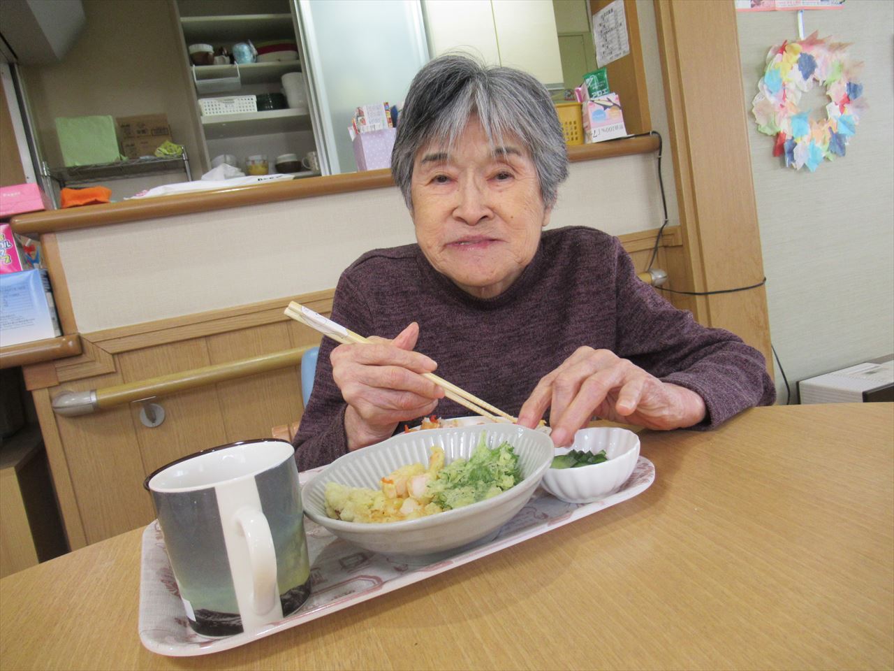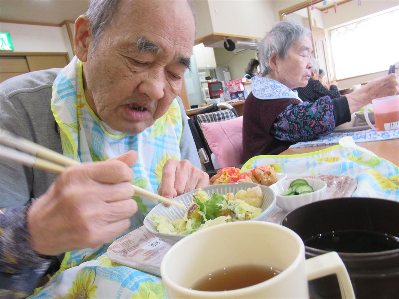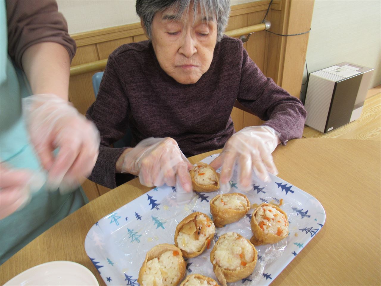 今日の手作り昼食は稲荷寿司とてんぷらを手作りしました。皆さんにできることをしっかりと手伝って頂き、たくさんの量を作りました!作り立てはとても美味しく皆さんあっという間に食べておられました!