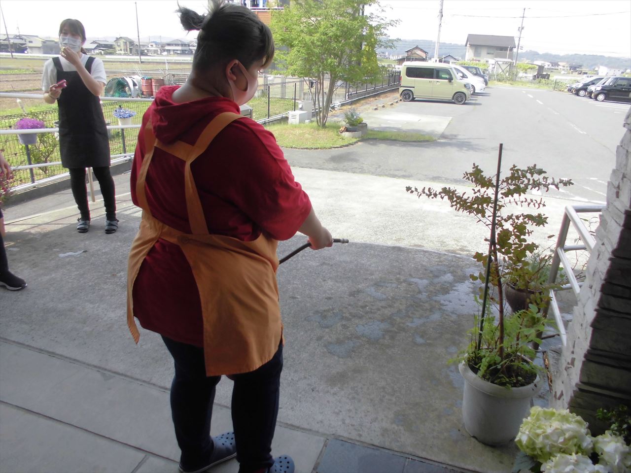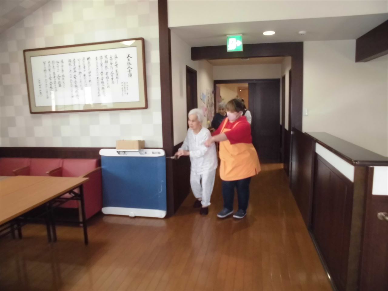 日中の火災を想定して避難訓練を実施しました。職員と入居者さま一緒に避難し、その後水消火器による消火訓練も行いました。