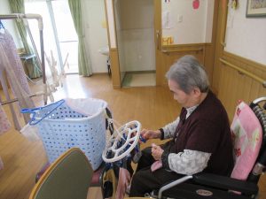 2階の女性入居者の皆様は写真のようにいつもよくお手伝いをして下さいます。