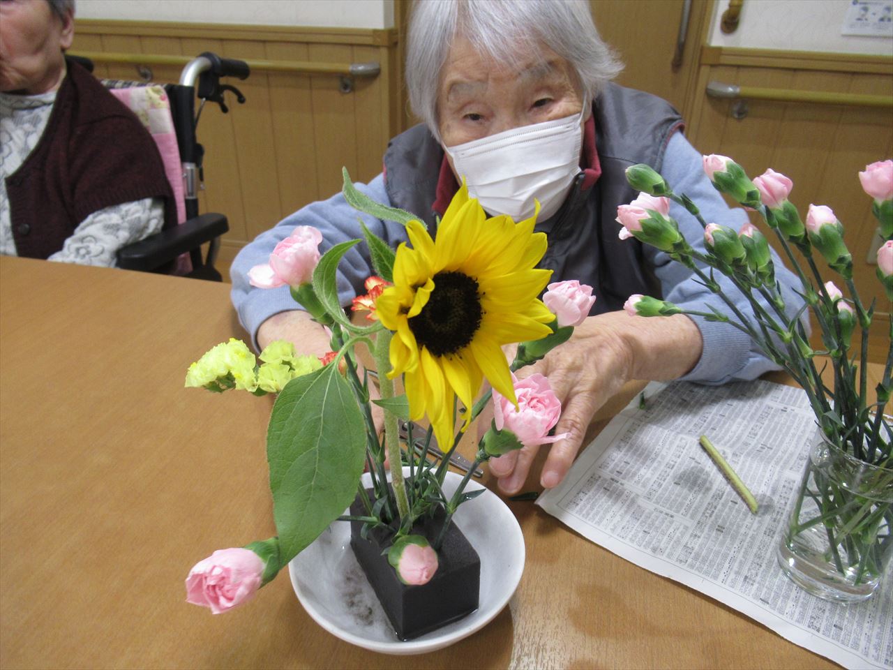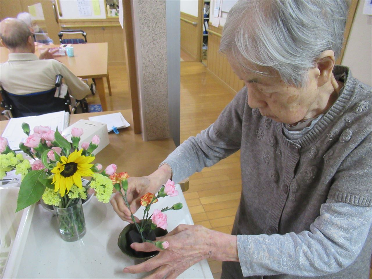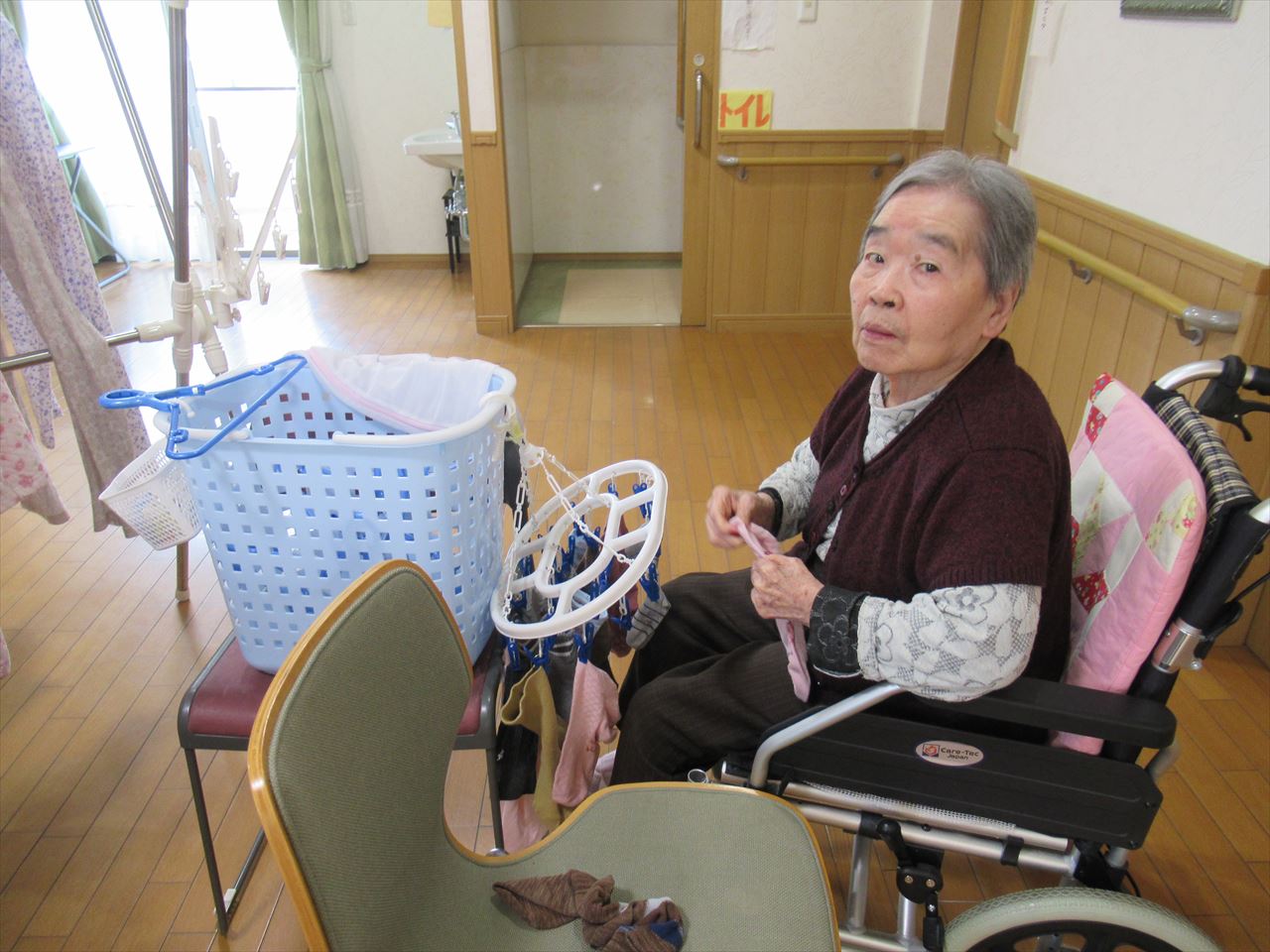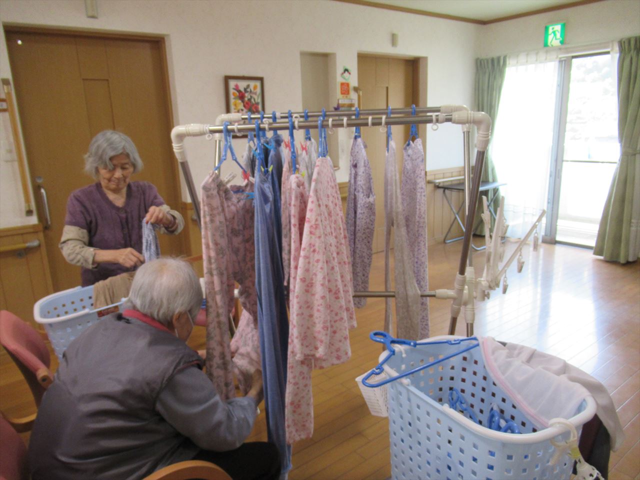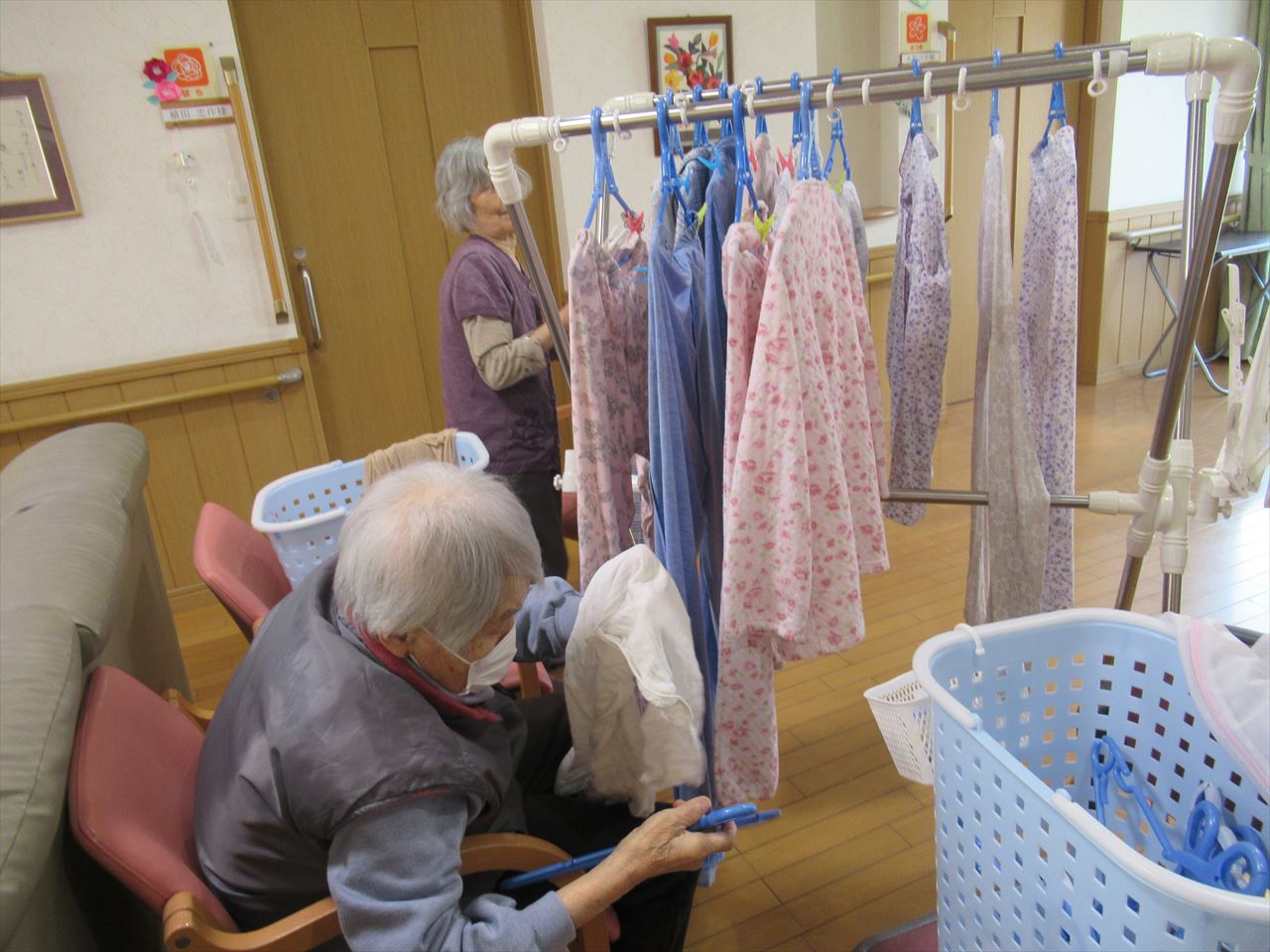 2階の女性入居者の皆様は写真のようにいつもよくお手伝いをして下さいます。