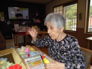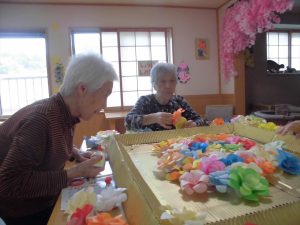 みんなで大きな花の飾りを作成しました。とても器用であっという間に仕上がりました。