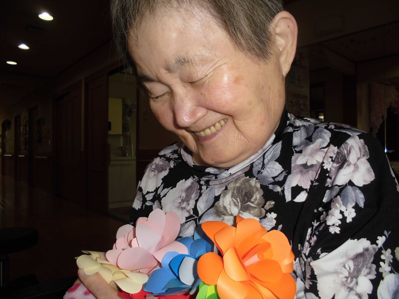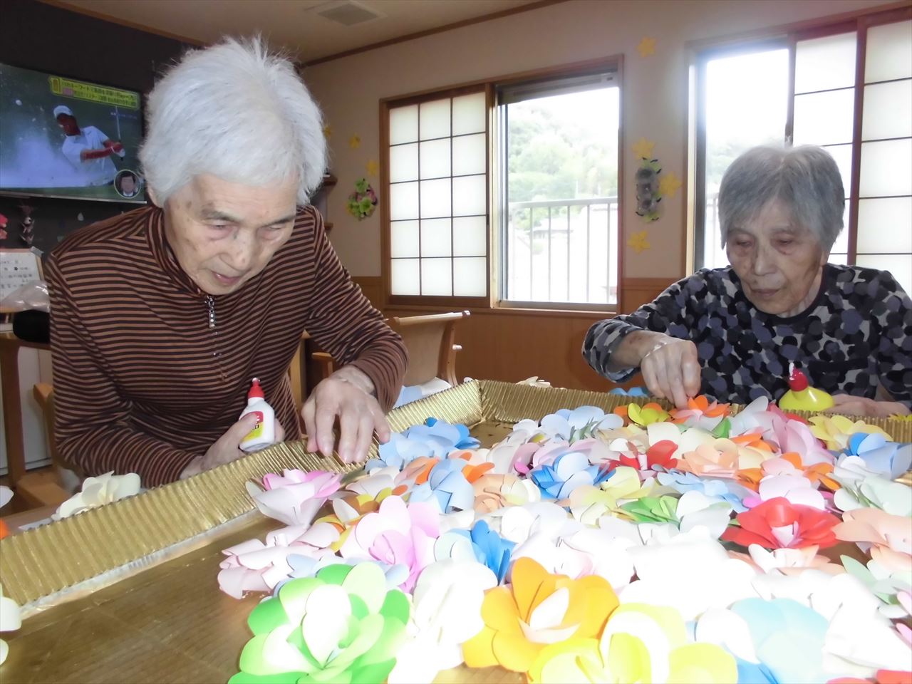 みんなで大きな花の飾りを作成しました。とても器用であっという間に仕上がりました。