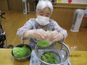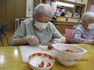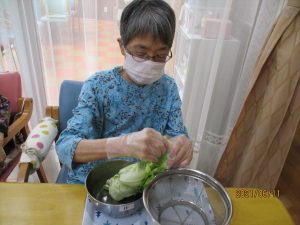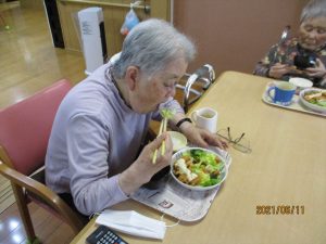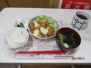 今日は昼食を手作りしました。チキン南蛮定食ということで、サラダを切ったり盛り付けたりという作業を皆さんに手伝ってもらいました。揚げたてをみんなで美味しく頂きました!