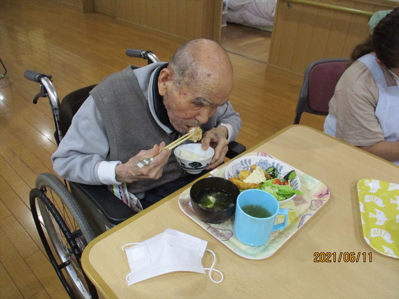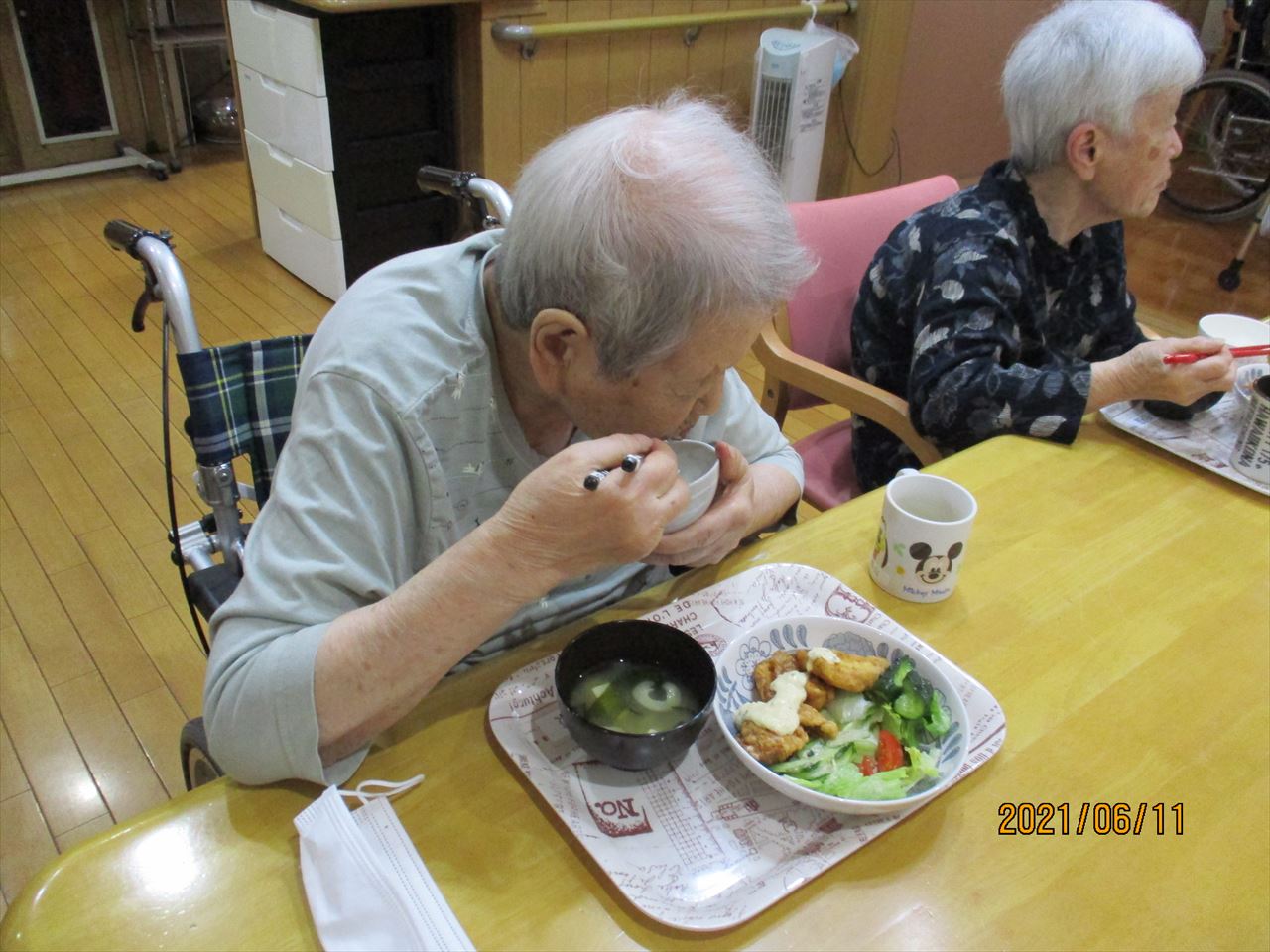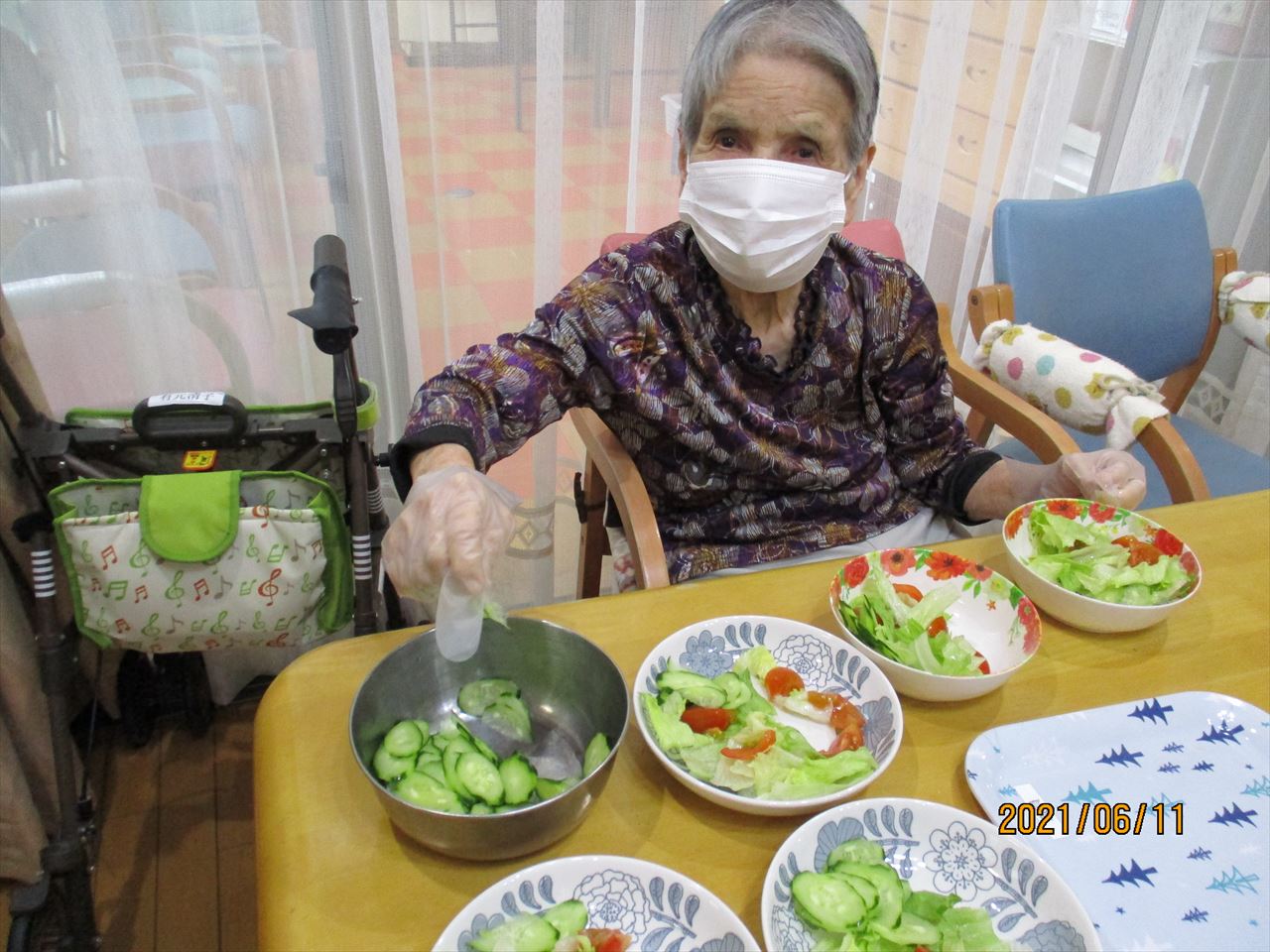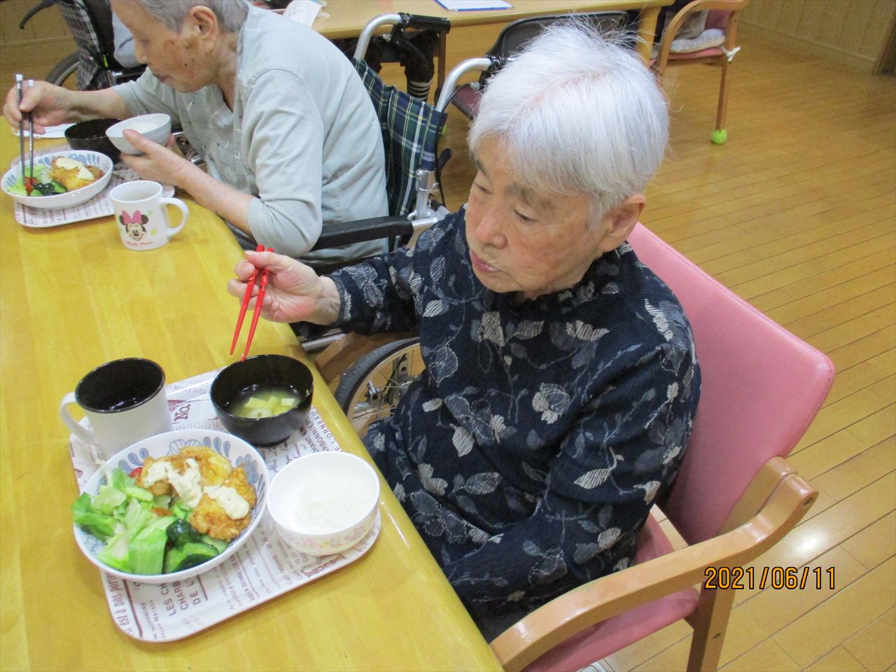 今日は昼食を手作りしました。チキン南蛮定食ということで、サラダを切ったり盛り付けたりという作業を皆さんに手伝ってもらいました。揚げたてをみんなで美味しく頂きました!