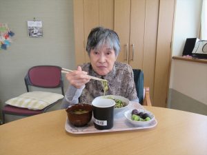 今日の手作り昼食は山口県の瓦そばを作りました。瓦そばというものを初めて聞いたのですが、肉にもしっかりと味をつけていてとても美味しかったです!皆さんの前で豪快に作ったので、目でも楽しむことができました!