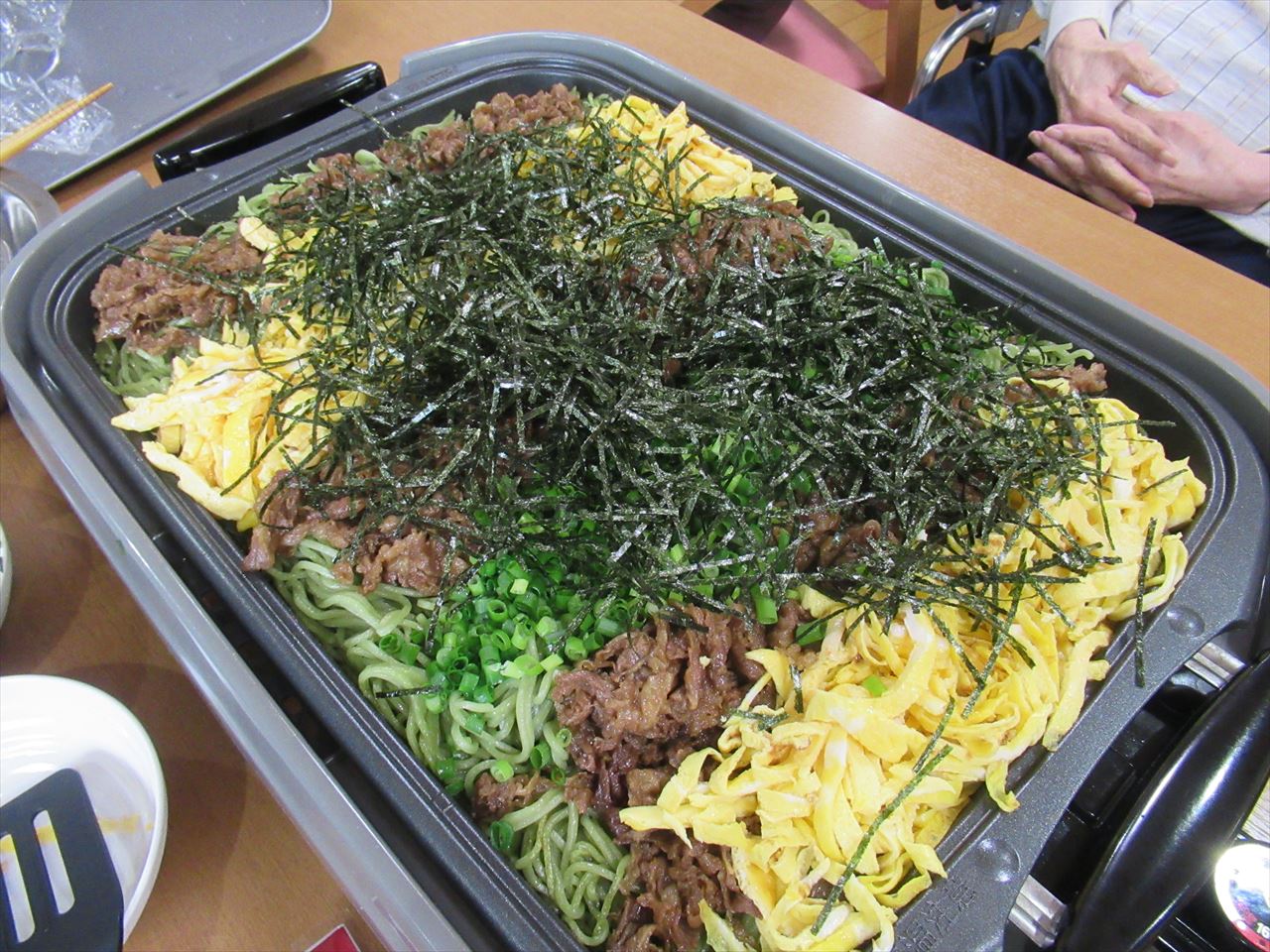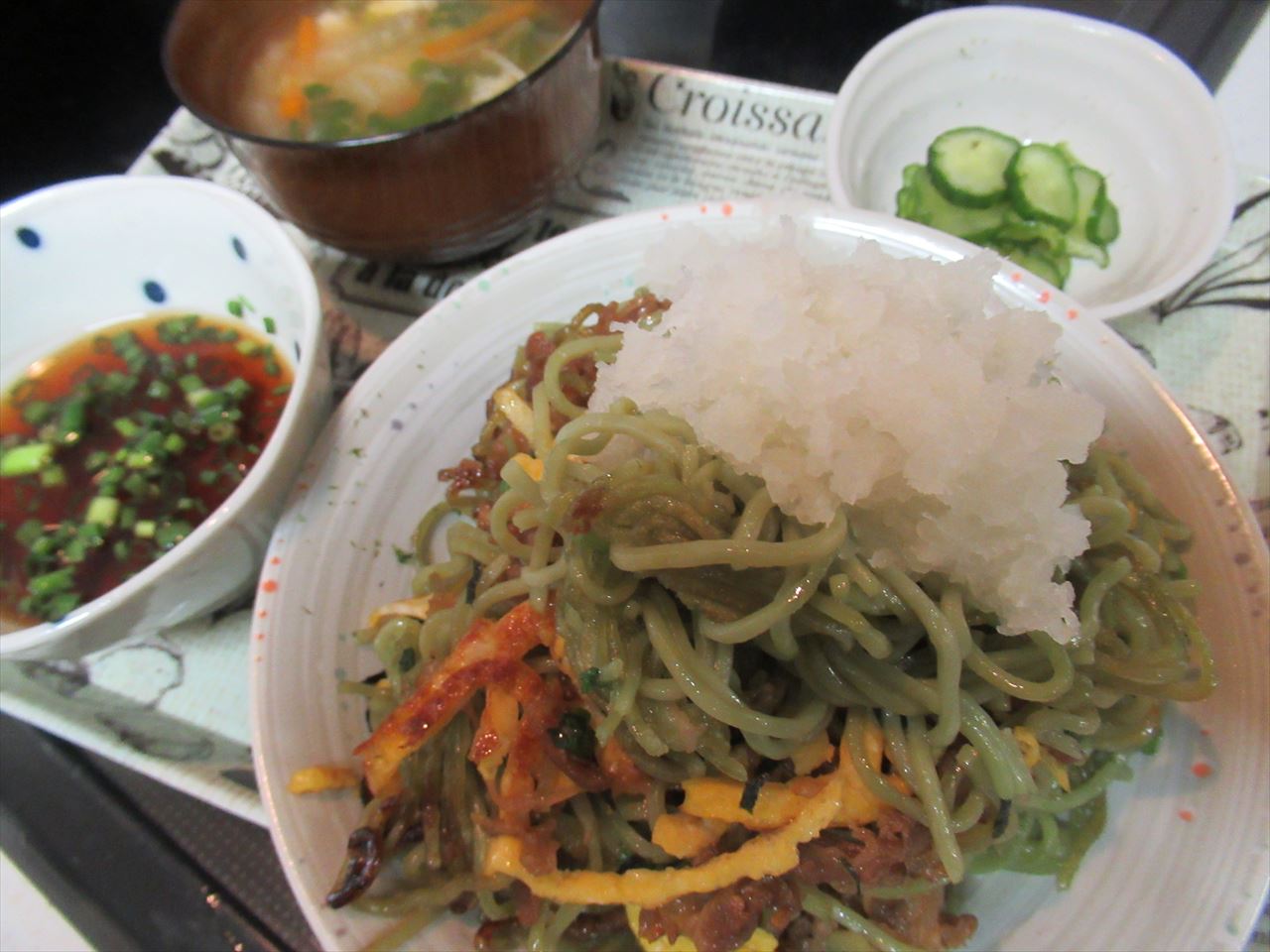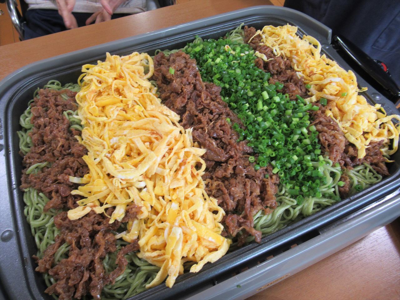今日の手作り昼食は山口県の瓦そばを作りました。瓦そばというものを初めて聞いたのですが、肉にもしっかりと味をつけていてとても美味しかったです!皆さんの前で豪快に作ったので、目でも楽しむことができました!