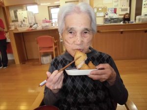 お昼にいなり寿司と唐揚げを作りみんなでいただき、写真撮影をしました。