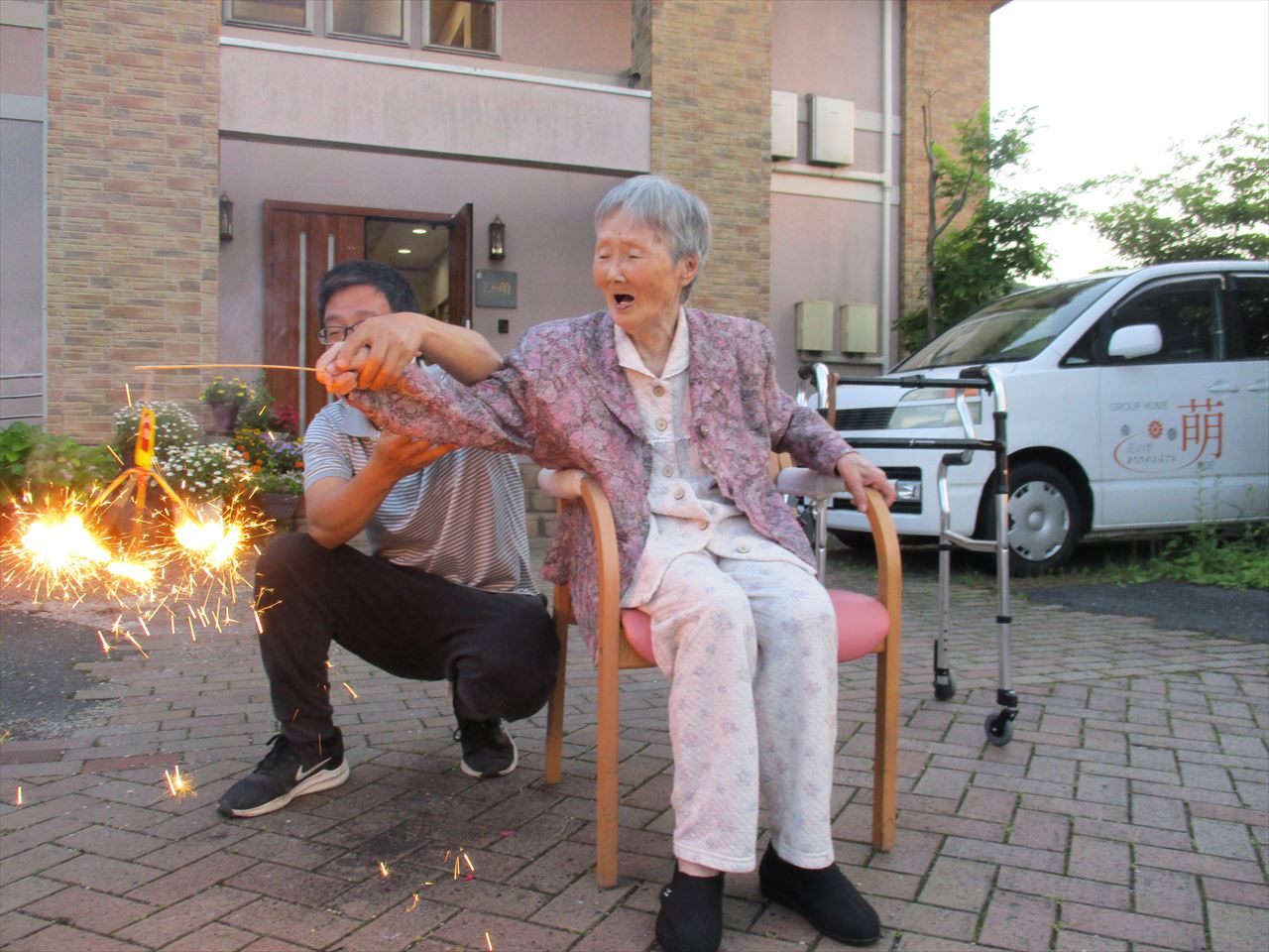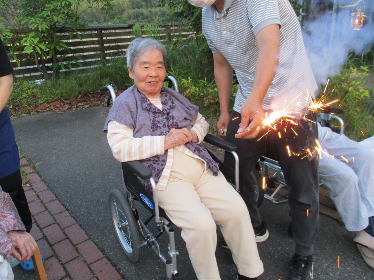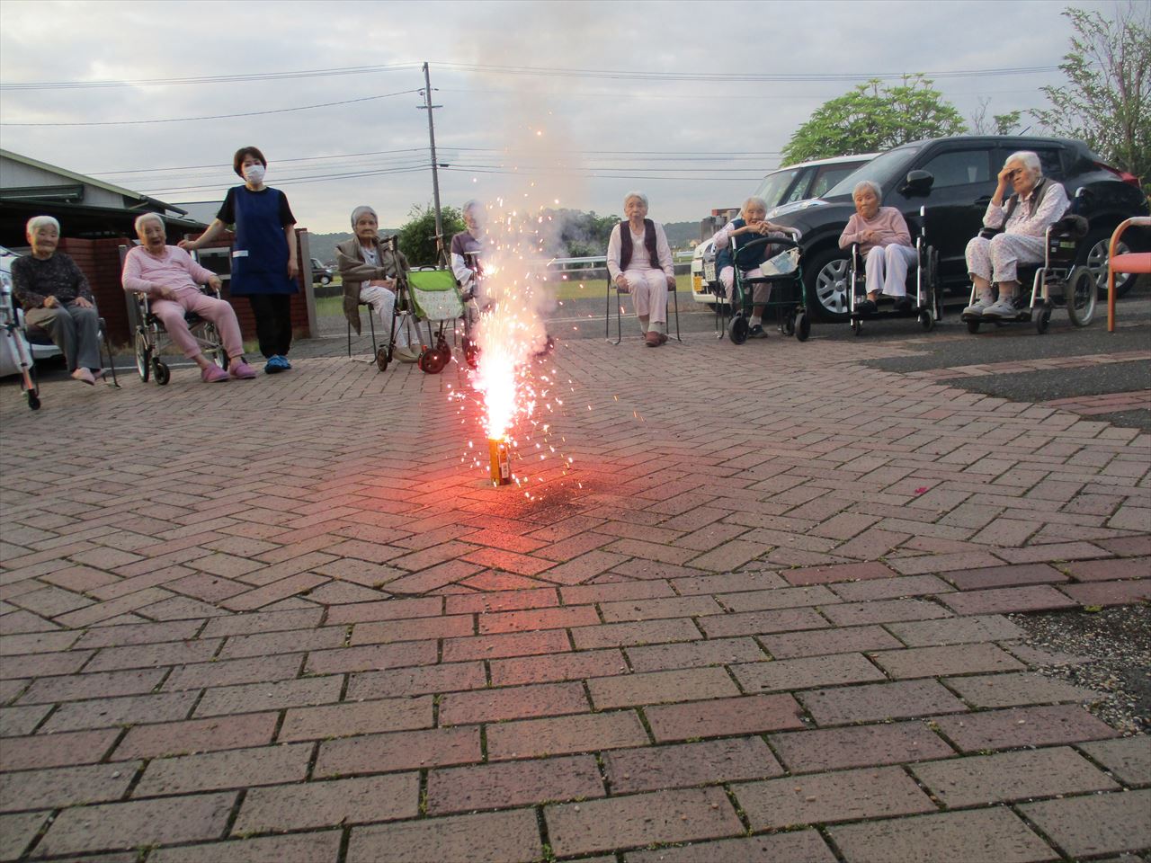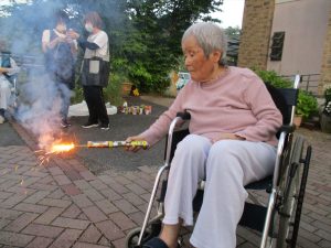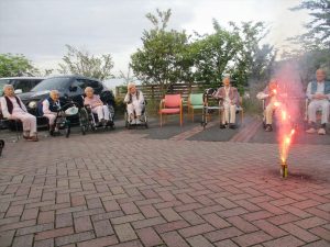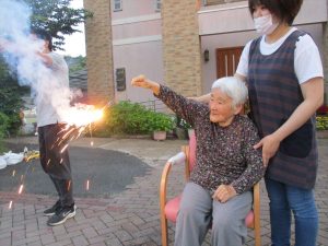 花火(花の里合同) 2023.05.20 去年買っていた花火が残っており、時期は早いのですが、湿気てしまう前に皆さんと一緒に花火をしました。 音に驚いたり、「きれいじゃなぁ」と喜んで下さったりと、様々な反応をして下さいました。夏はこれからのでまたしましょうね! 誕生日会(花の里1階) 前の記事 誕生日会(ふるさと1階) 次の記事