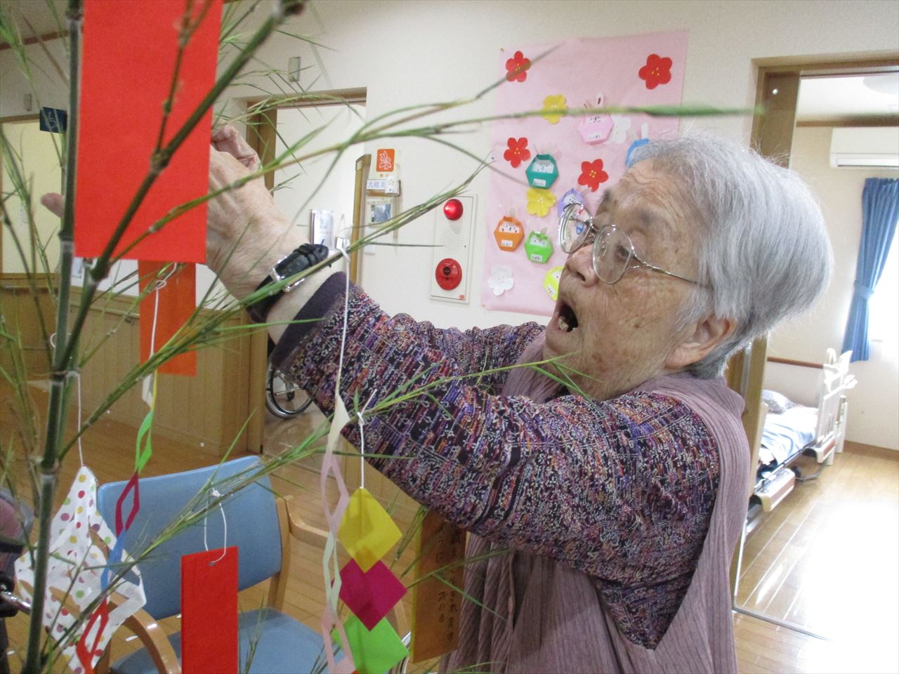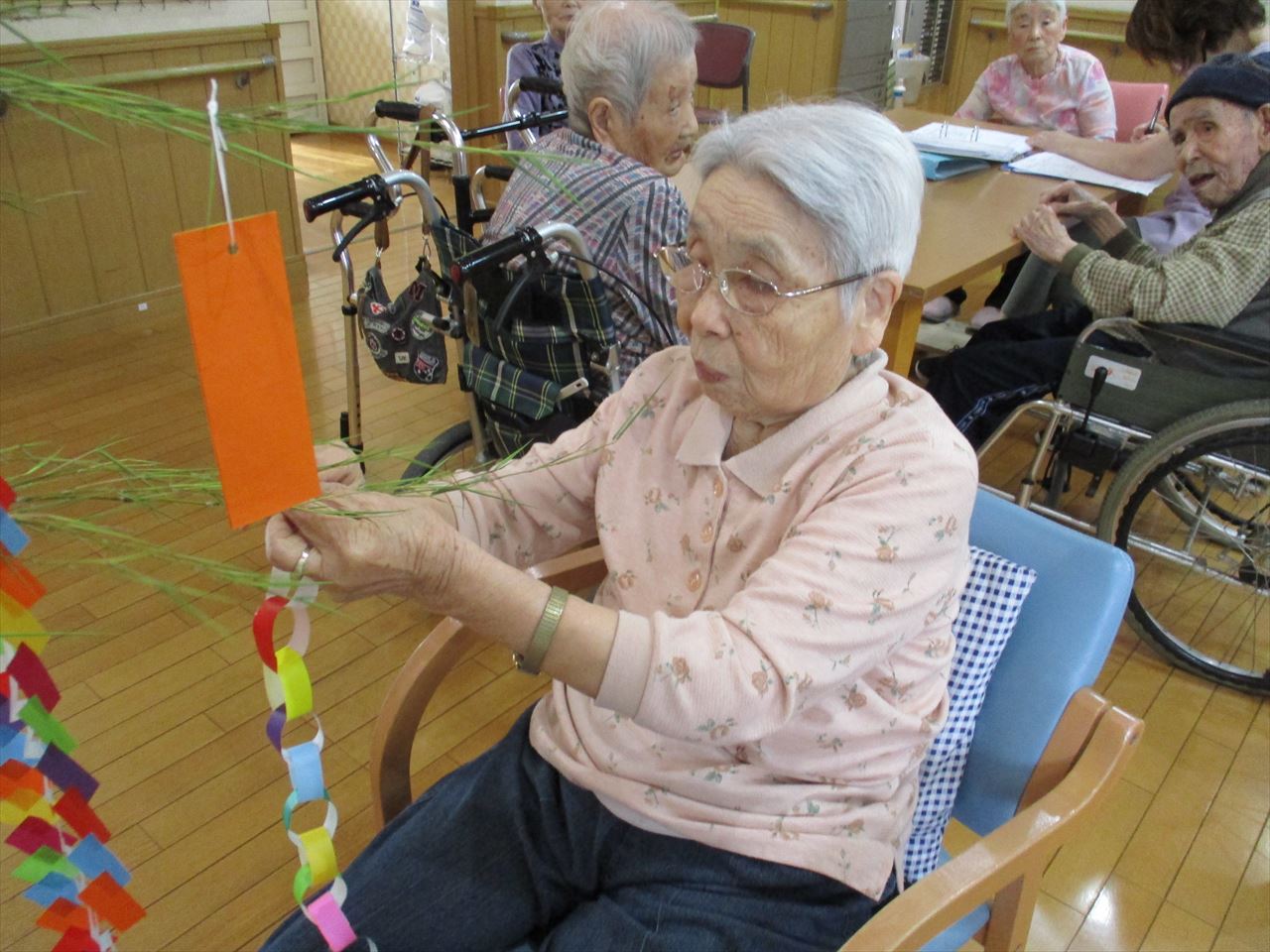 短冊に願い事を書き皆さんで飾り付けを行いました。
