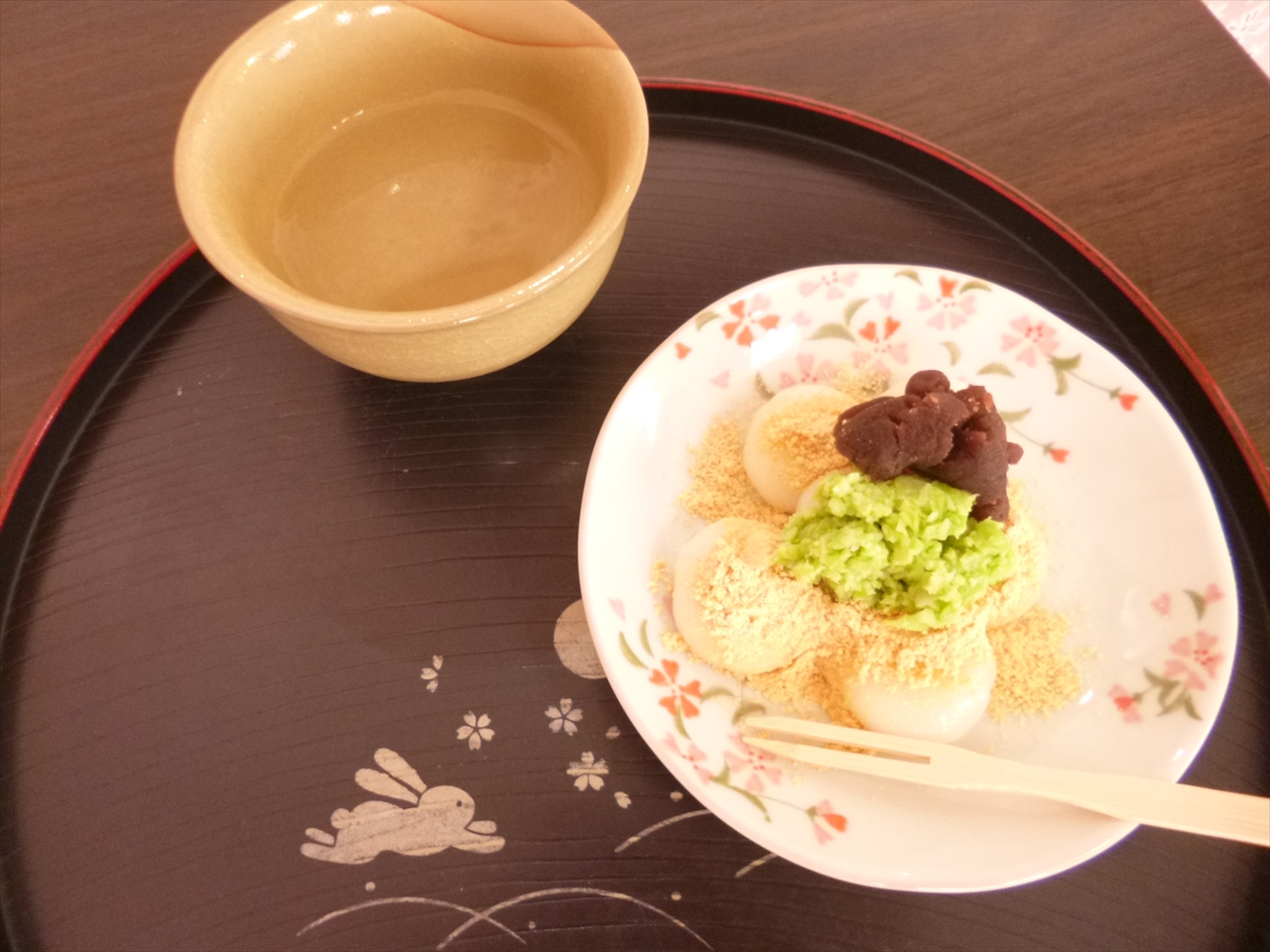 団子の上には『あんこ・きな粉・ずんだ』と三食し、味も3倍楽しみました。