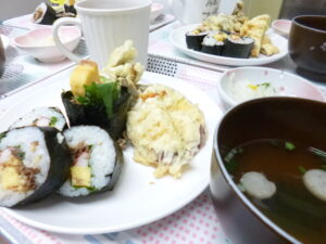 昼食づくり(巻きずし天ぷら) 2025.02.3 あなたのふるさと萌(1階) おいしい!と、言っていただき完食してくれました。 おやつの時間は豆まきも実施しました。 誕生日外食 前の記事 節分行事 次の記事