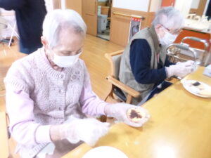 おやつ作り(ふうまん風ケーキ) 2025.02.28 あなたのふるさと萌(1階) 倉敷のソールフードふうまんを模してみんなでつくってみました。 中にこし餡とホイップを挟み、絶妙な相性に感嘆でした。 誕生日会 前の記事 ひな祭り会 次の記事